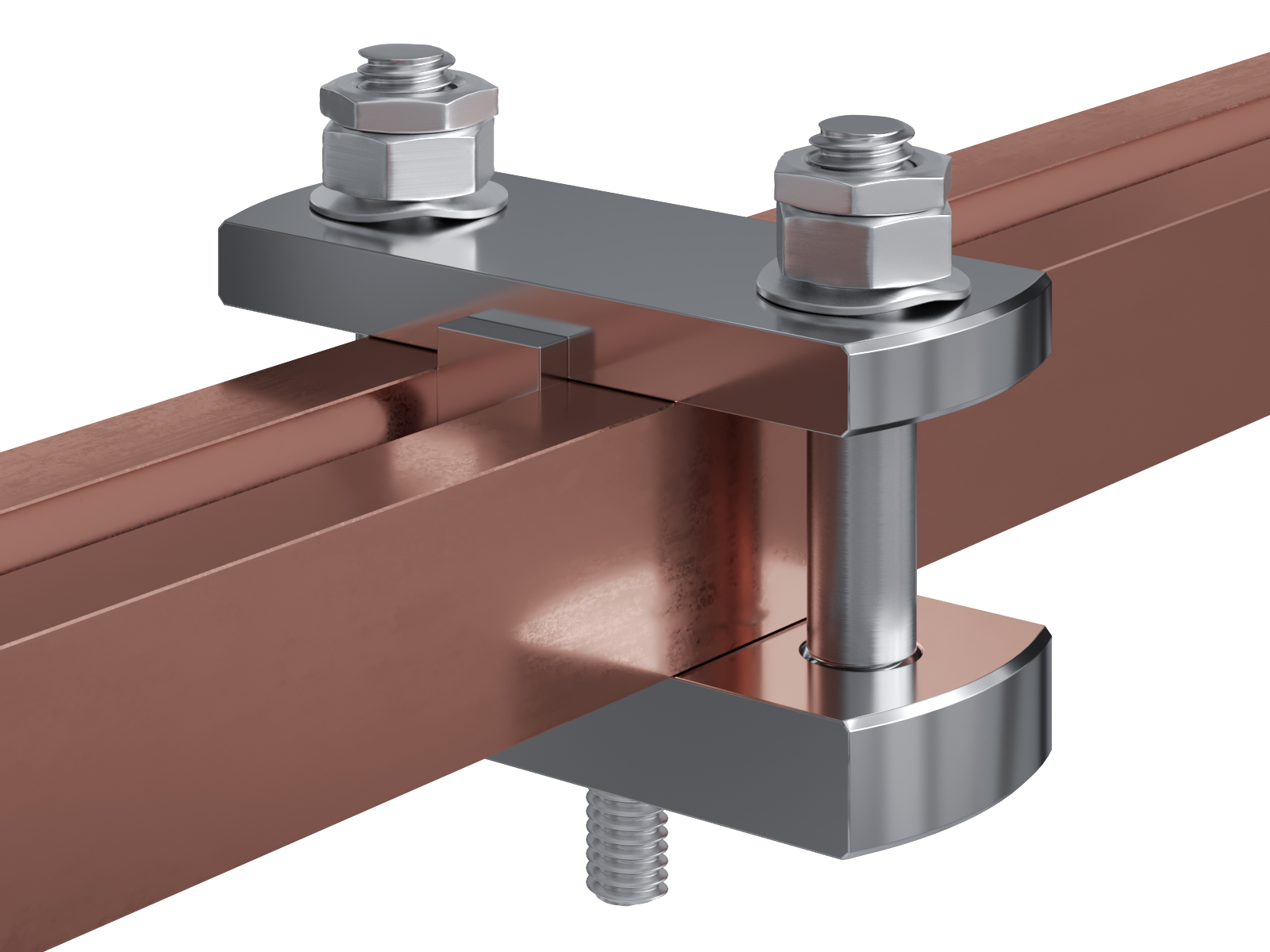 Schienenträger aus vernickeltem Messing zur Befestigung und Sicherung von Stromschienen aus Kupfer