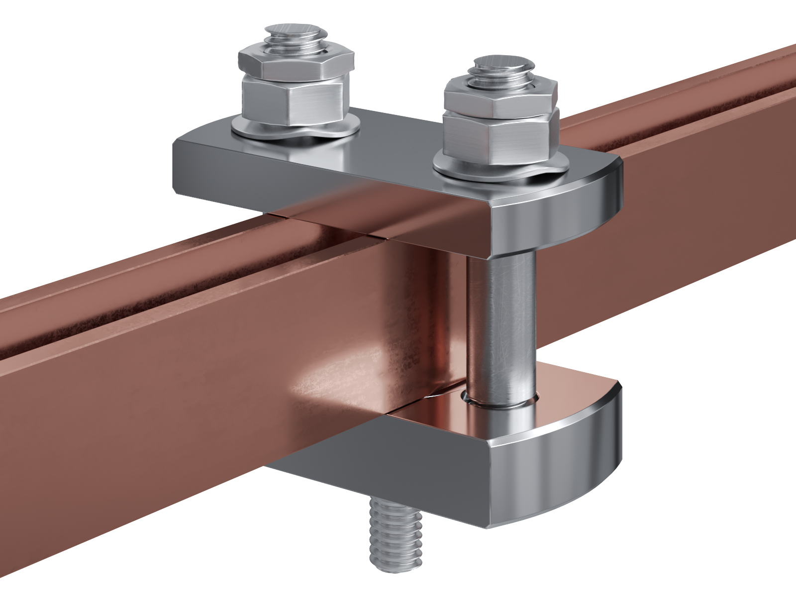 Schienenträger aus vernickeltem Messing zur Befestigung und Sicherung von Stromschienen aus Kupfer