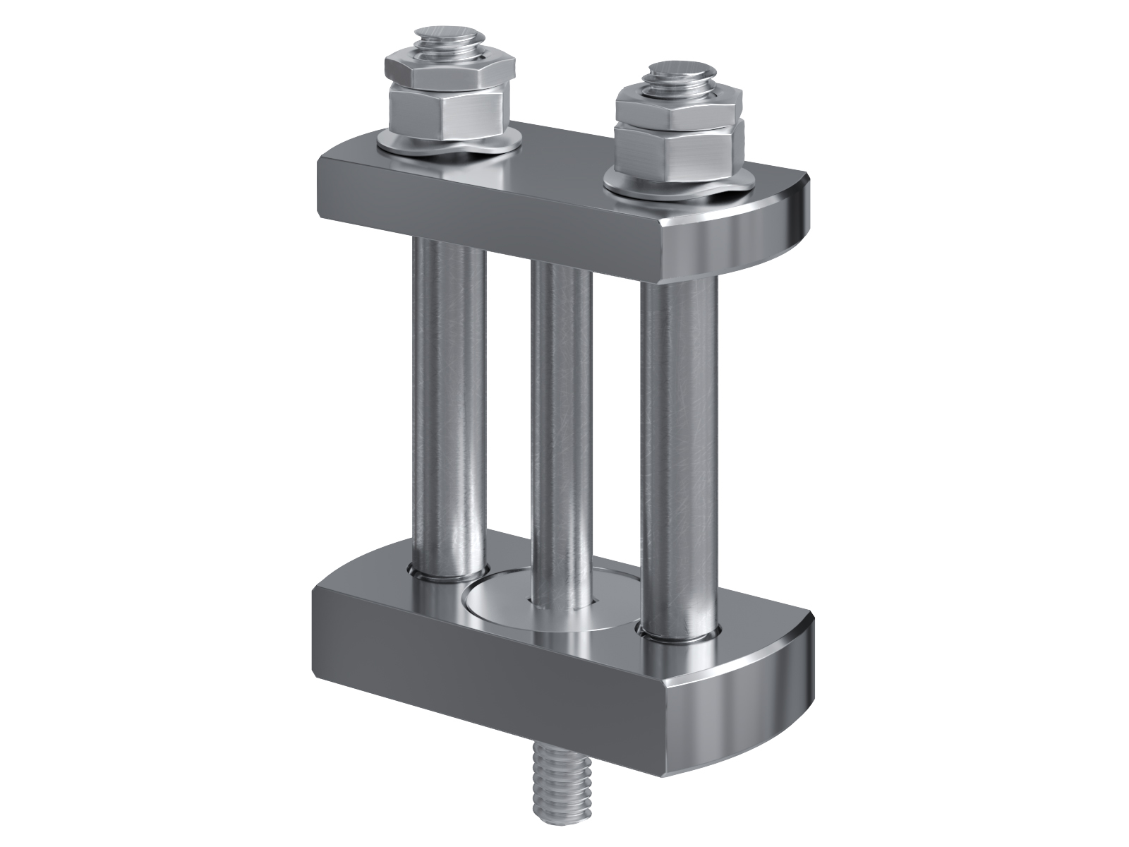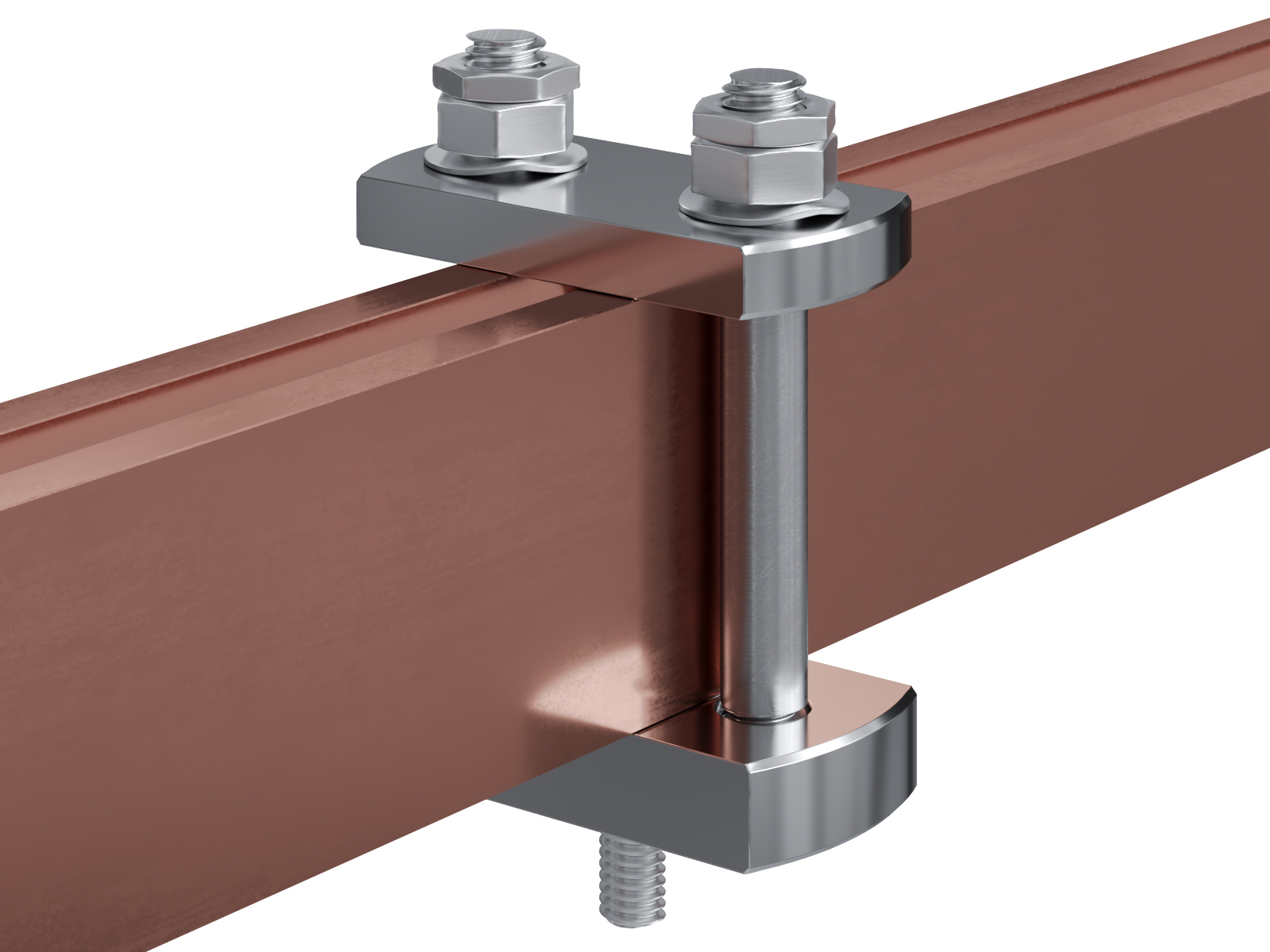 Schienenträger aus vernickeltem Messing zur Befestigung und Sicherung von Stromschienen aus Kupfer