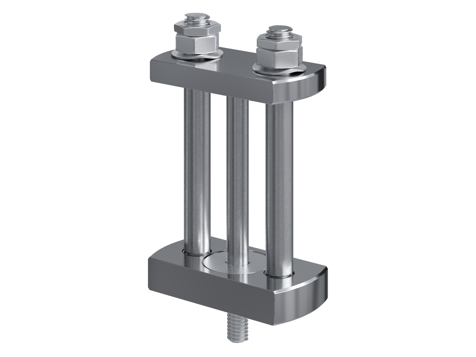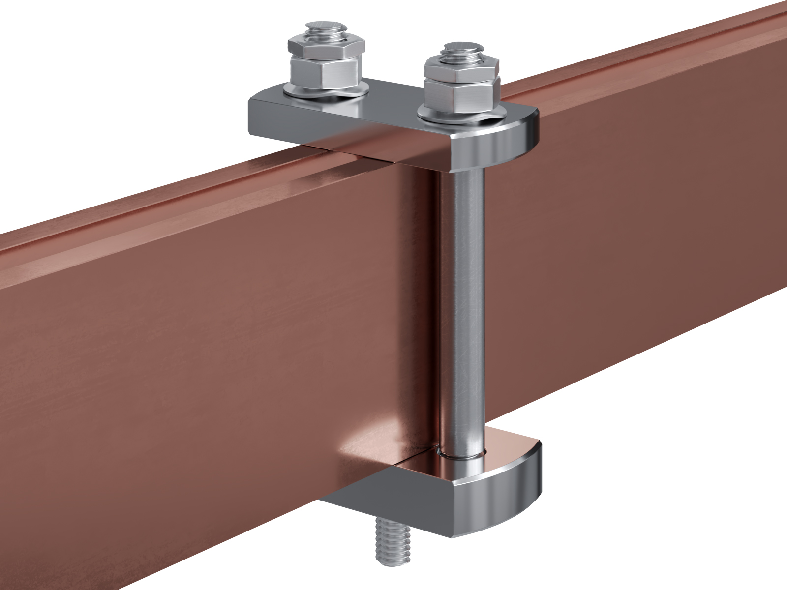 Schienenträger aus vernickeltem Messing zur Befestigung und Sicherung von Stromschienen aus Kupfer