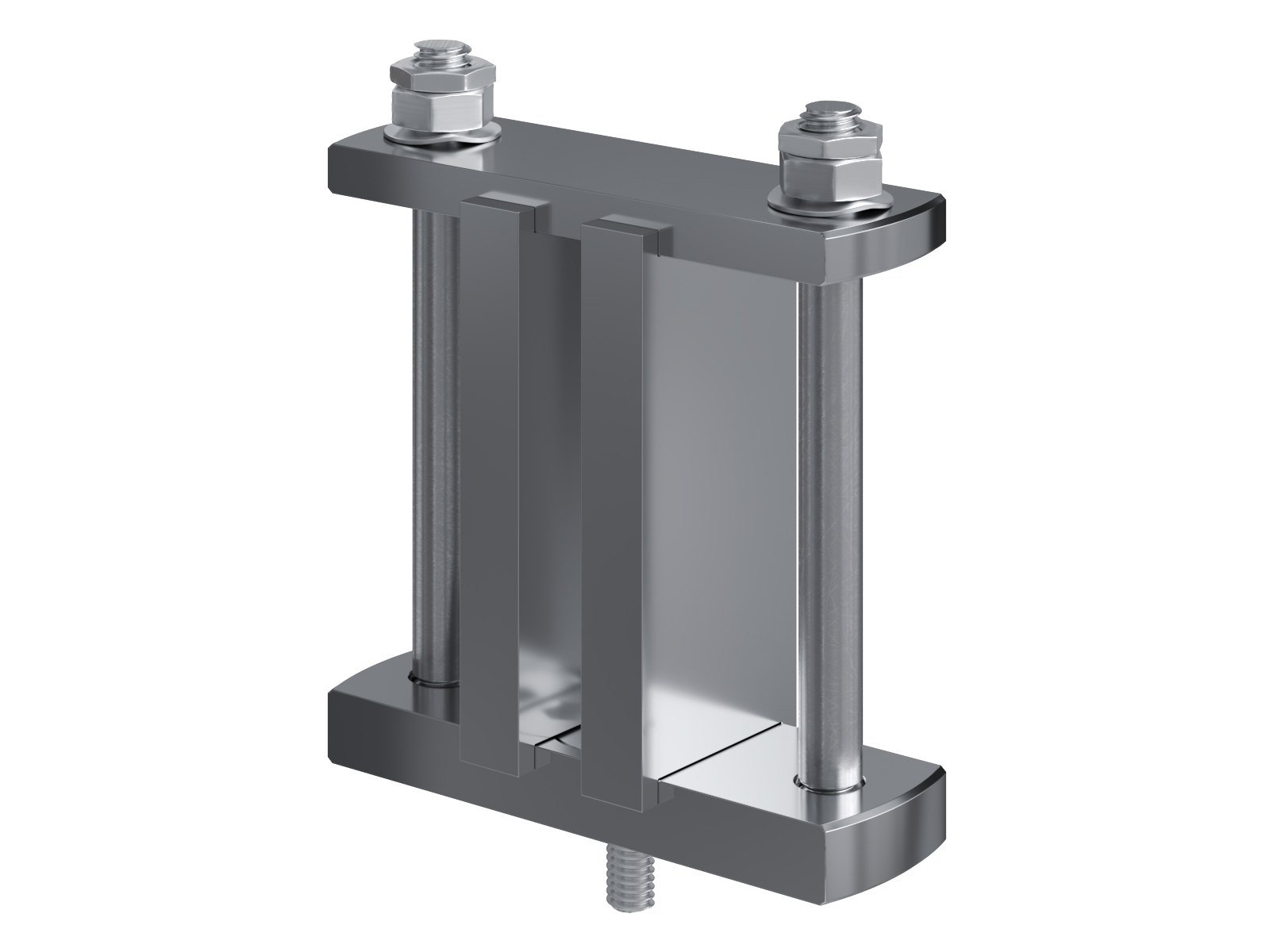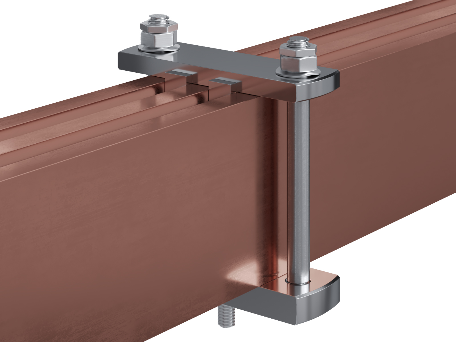 Schienenträger aus vernickeltem Messing zur Befestigung und Sicherung von Stromschienen aus Kupfer