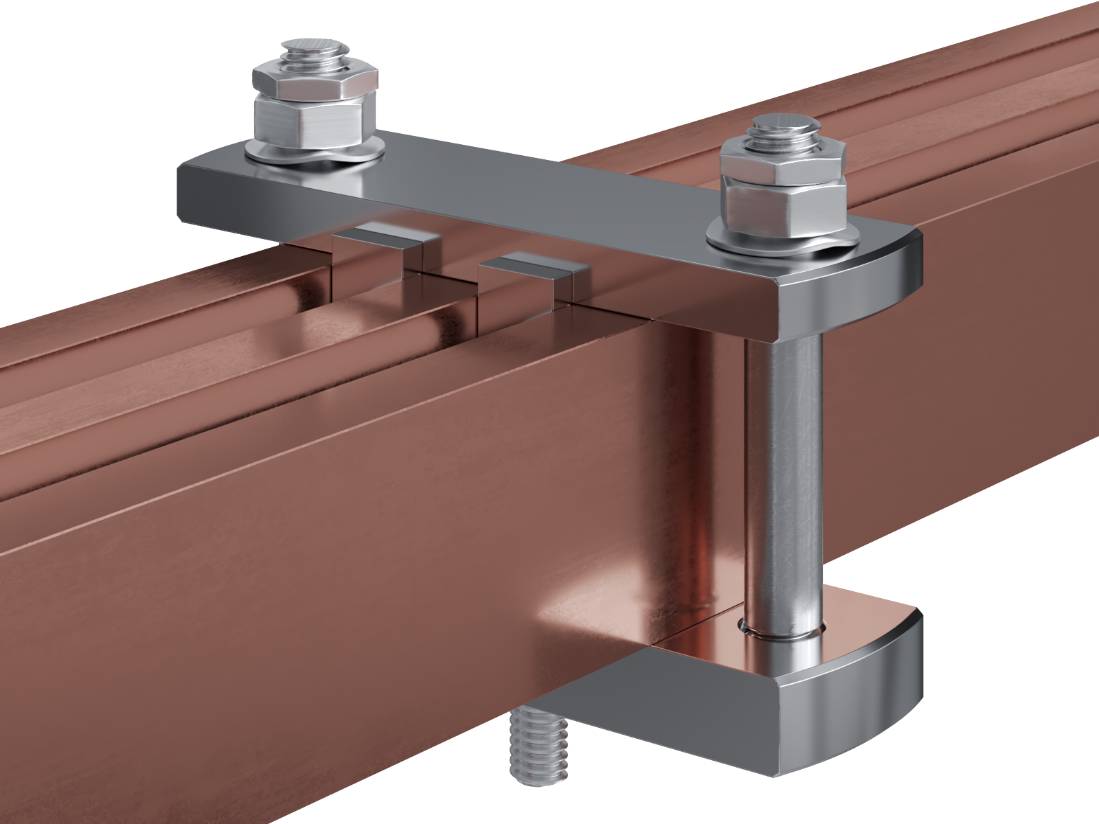 Schienenträger aus vernickeltem Messing zur Befestigung und Sicherung von Stromschienen aus Kupfer