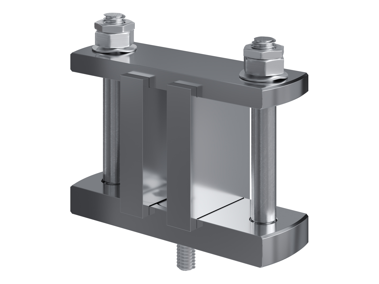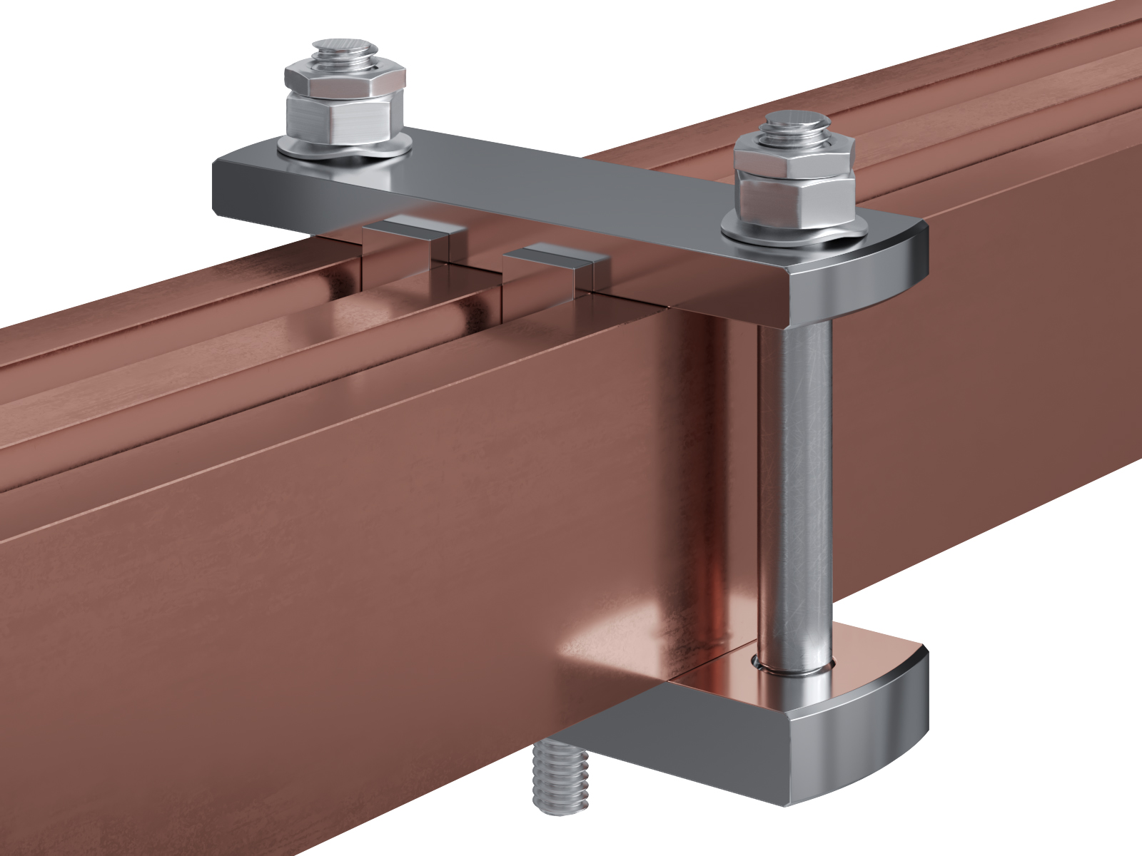 Schienenträger aus vernickeltem Messing zur Befestigung und Sicherung von Stromschienen aus Kupfer