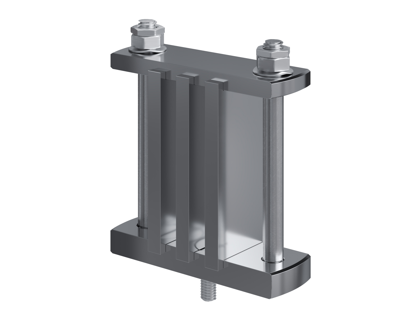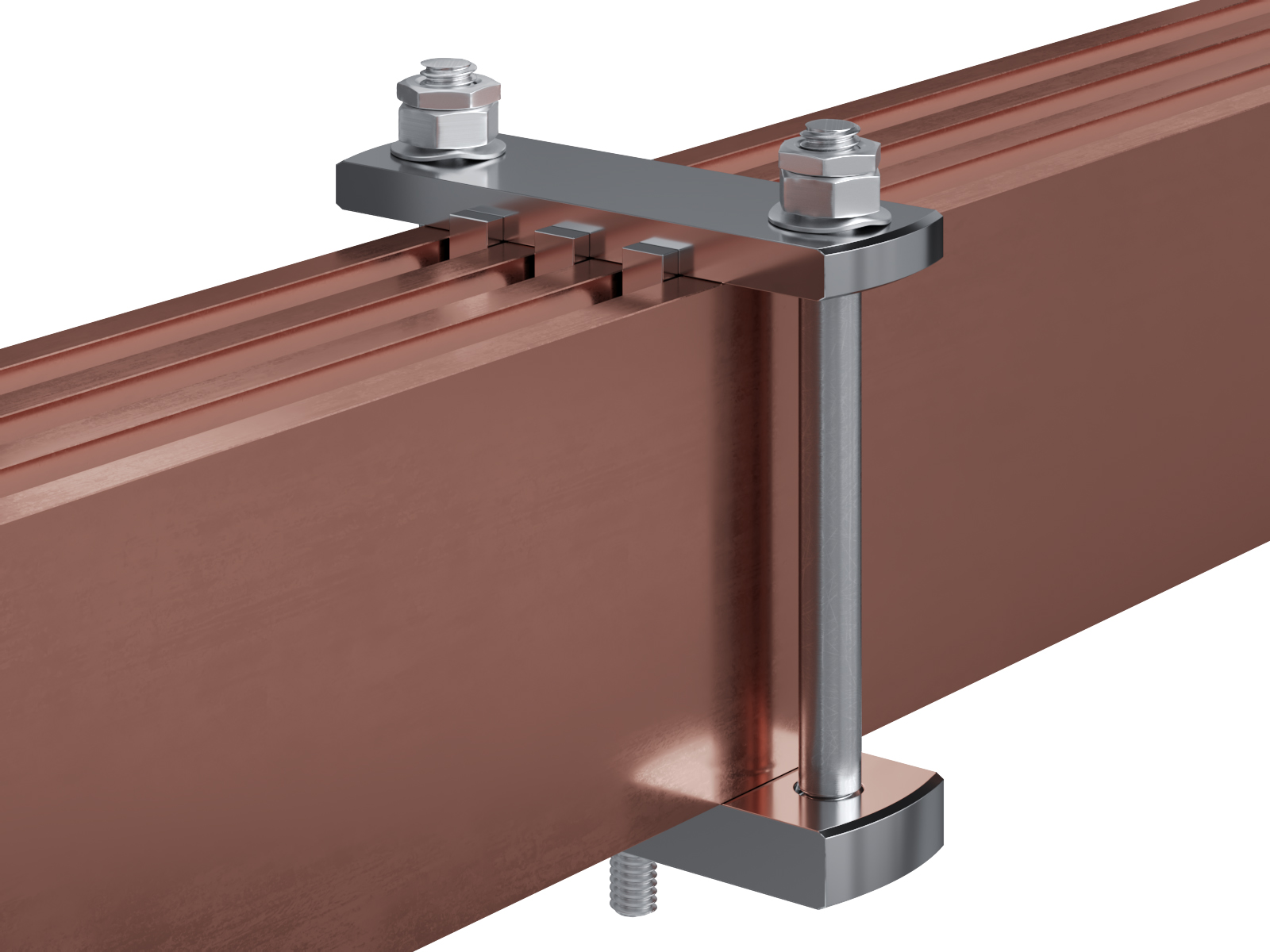 Schienenträger aus vernickeltem Messing zur Befestigung und Sicherung von Stromschienen aus Kupfer