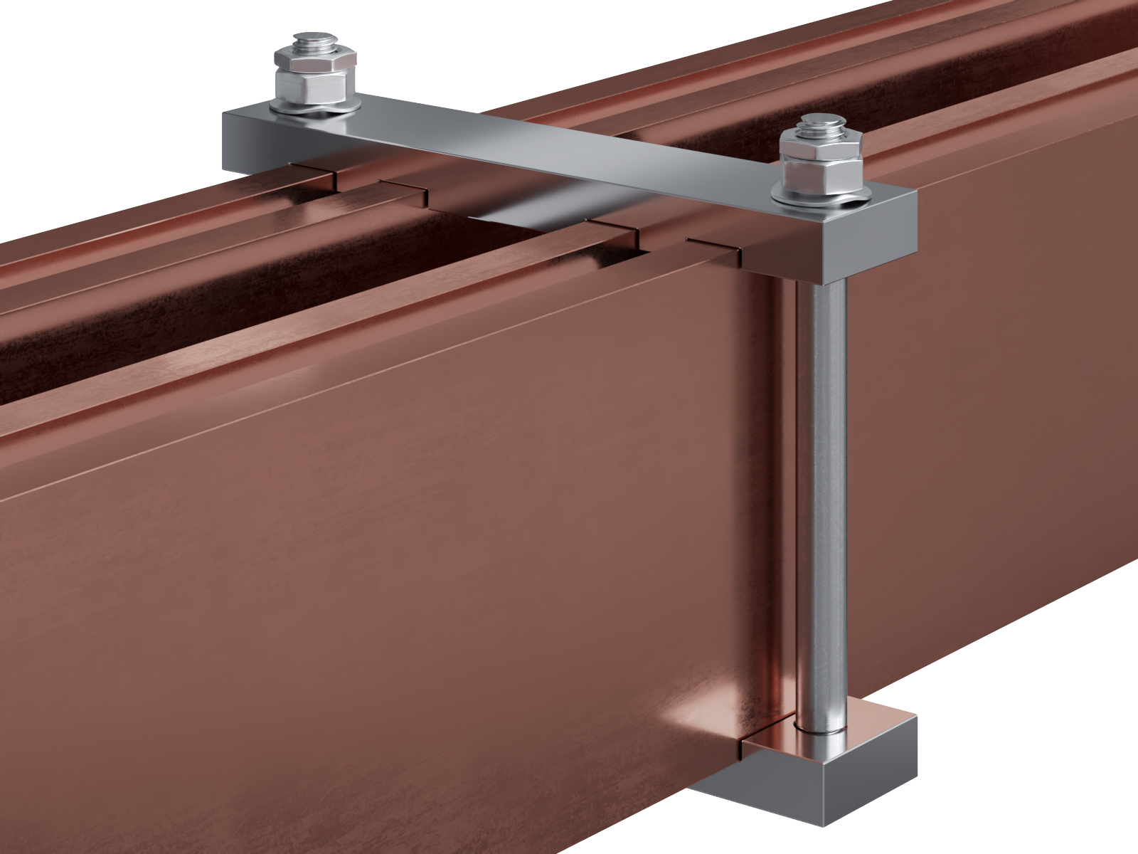 Schienenträger aus vernickeltem Messing zur Befestigung und Sicherung von Stromschienen aus Kupfer