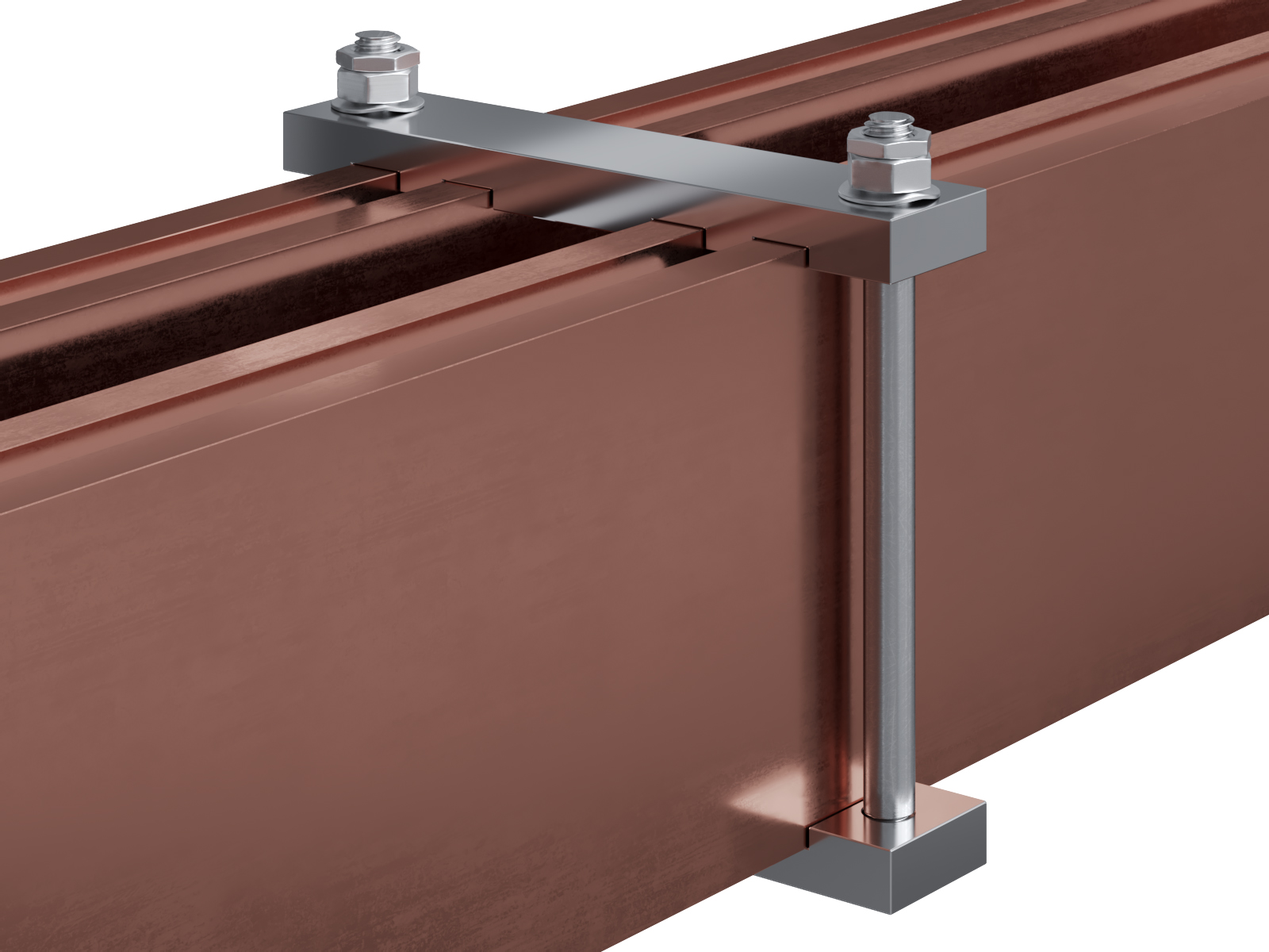 Schienenträger aus vernickeltem Messing zur Befestigung und Sicherung von Stromschienen aus Kupfer