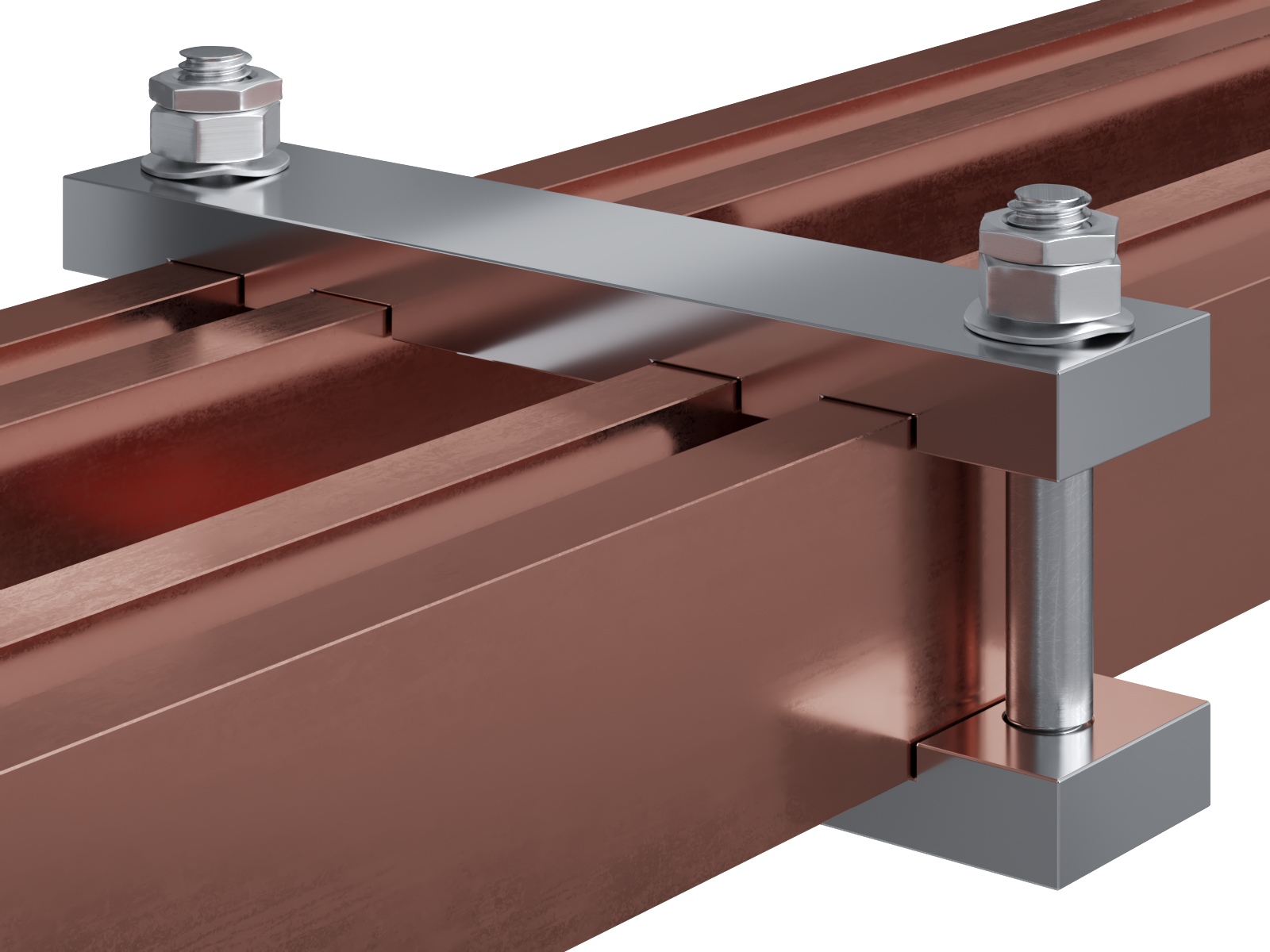 Schienenträger aus vernickeltem Messing zur Befestigung und Sicherung von Stromschienen aus Kupfer