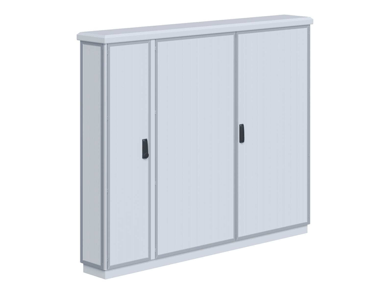 | Outdoor-Schaltschrank aus doppelwandigen Aluminiumprofilen mit EVU-Teil | 11111435 | 1.400 mm | 2.800 mm | 400 mm | Zu den Details |