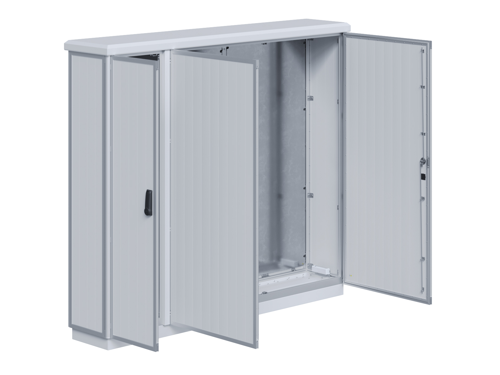 | Outdoor-Schaltschrank aus doppelwandigen Aluminiumprofilen mit EVU-Teil | 11113039 | 1.600 mm | 2.400 mm | 700 mm | Zu den Details |