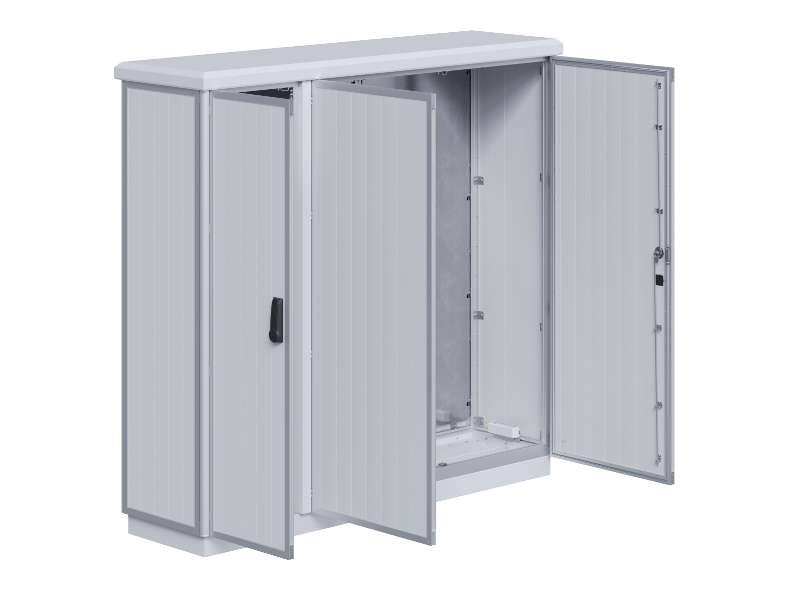 | Outdoor-Schaltschrank aus doppelwandigen Aluminiumprofilen mit EVU-Teil | 11113039 | 1.600 mm | 2.400 mm | 700 mm | Zu den Details |