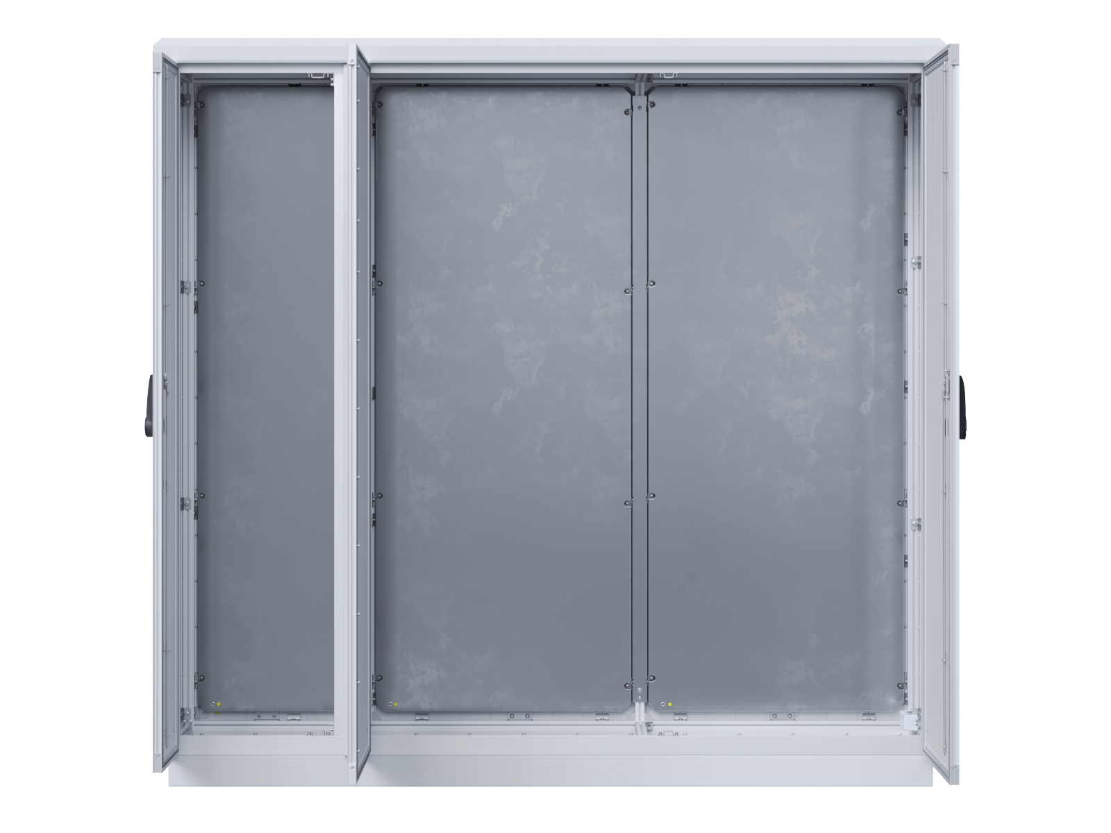 | Outdoor-Schaltschrank aus doppelwandigen Aluminiumprofilen mit EVU-Teil | 11111438 | 2.000 mm | 2.800 mm | 400 mm | Zu den Details |