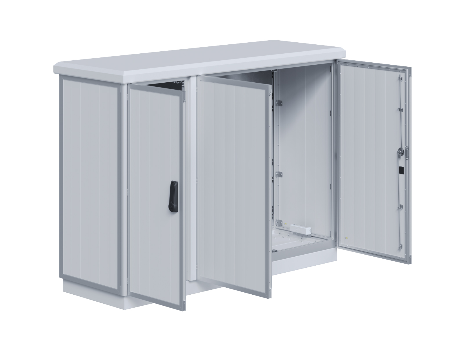 | Outdoor-Schaltschrank aus doppelwandigen Aluminiumprofilen mit EVU-Teil | 11113056 | 2.200 mm | 2.800 mm | 700 mm | Zu den Details |