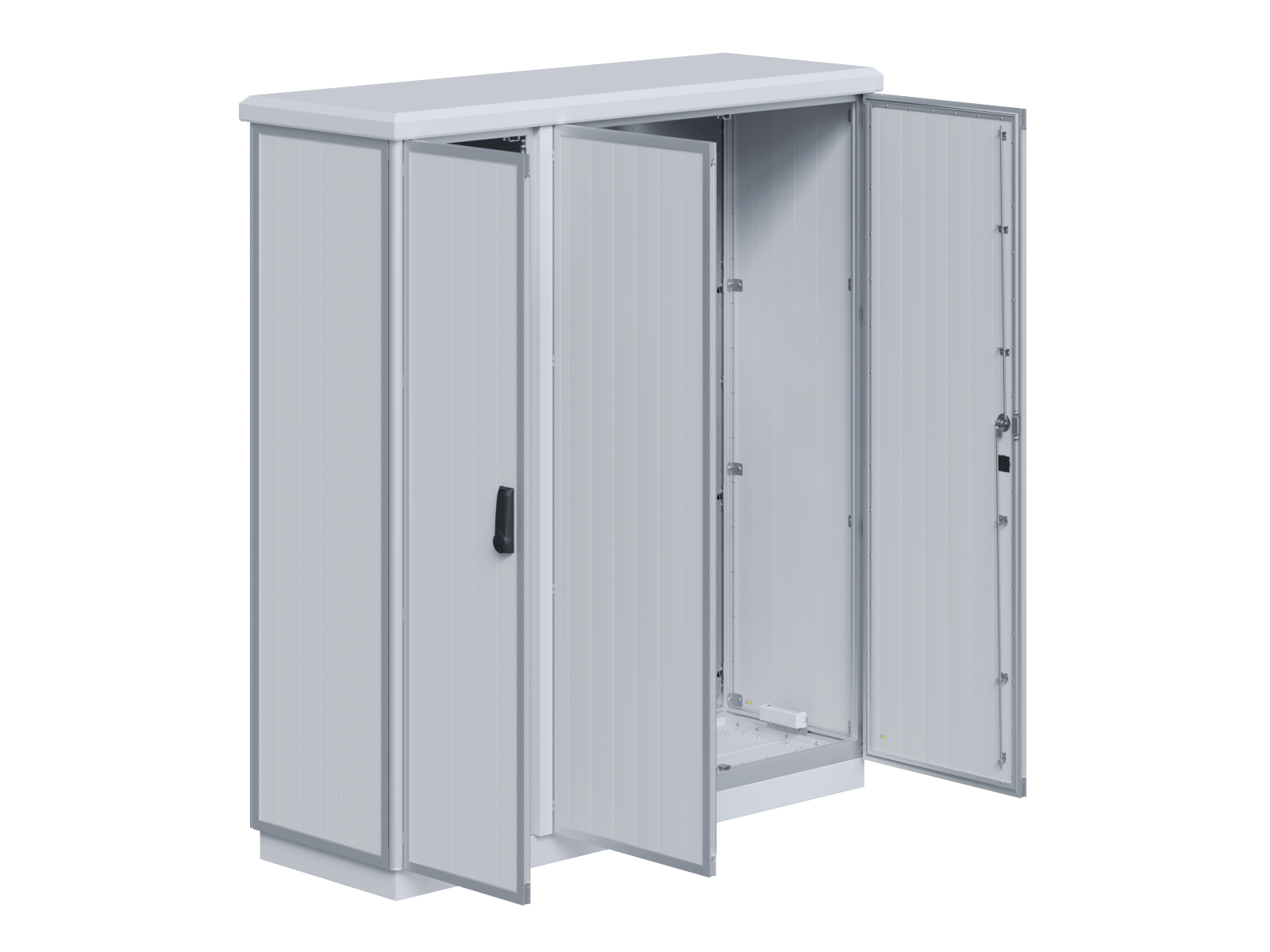 | Outdoor-Schaltschrank aus doppelwandigen Aluminiumprofilen mit EVU-Teil | 11113056 | 2.200 mm | 2.800 mm | 700 mm | Zu den Details |