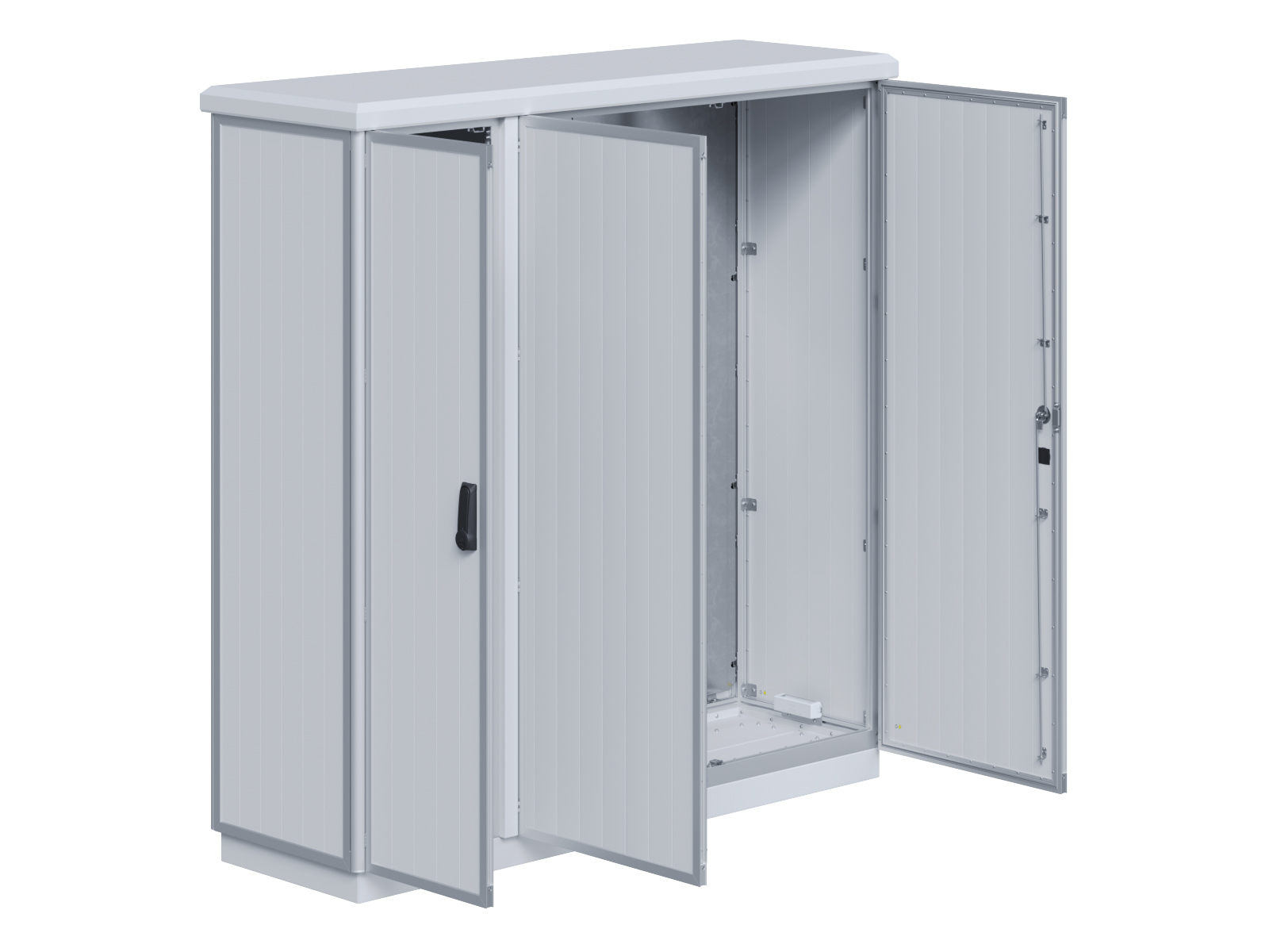 | Outdoor-Schaltschrank aus doppelwandigen Aluminiumprofilen mit EVU-Teil | 11113039 | 1.600 mm | 2.400 mm | 700 mm | Zu den Details |