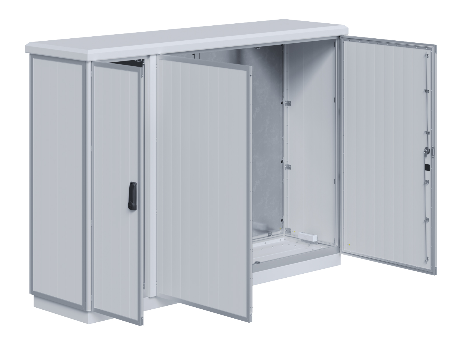 | Outdoor-Schaltschrank aus doppelwandigen Aluminiumprofilen mit EVU-Teil | 11111435 | 1.400 mm | 2.800 mm | 400 mm | Zu den Details |