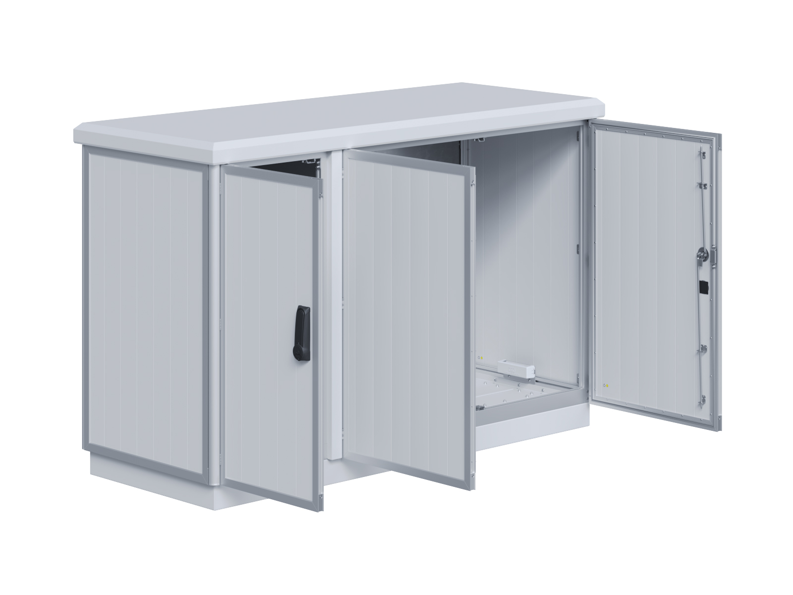| Outdoor-Schaltschrank aus doppelwandigen Aluminiumprofilen mit EVU-Teil | 11113056 | 2.200 mm | 2.800 mm | 700 mm | Zu den Details |