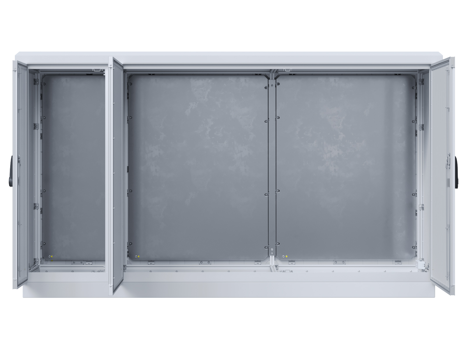 | Outdoor-Schaltschrank aus doppelwandigen Aluminiumprofilen mit EVU-Teil | 11111438 | 2.000 mm | 2.800 mm | 400 mm | Zu den Details |