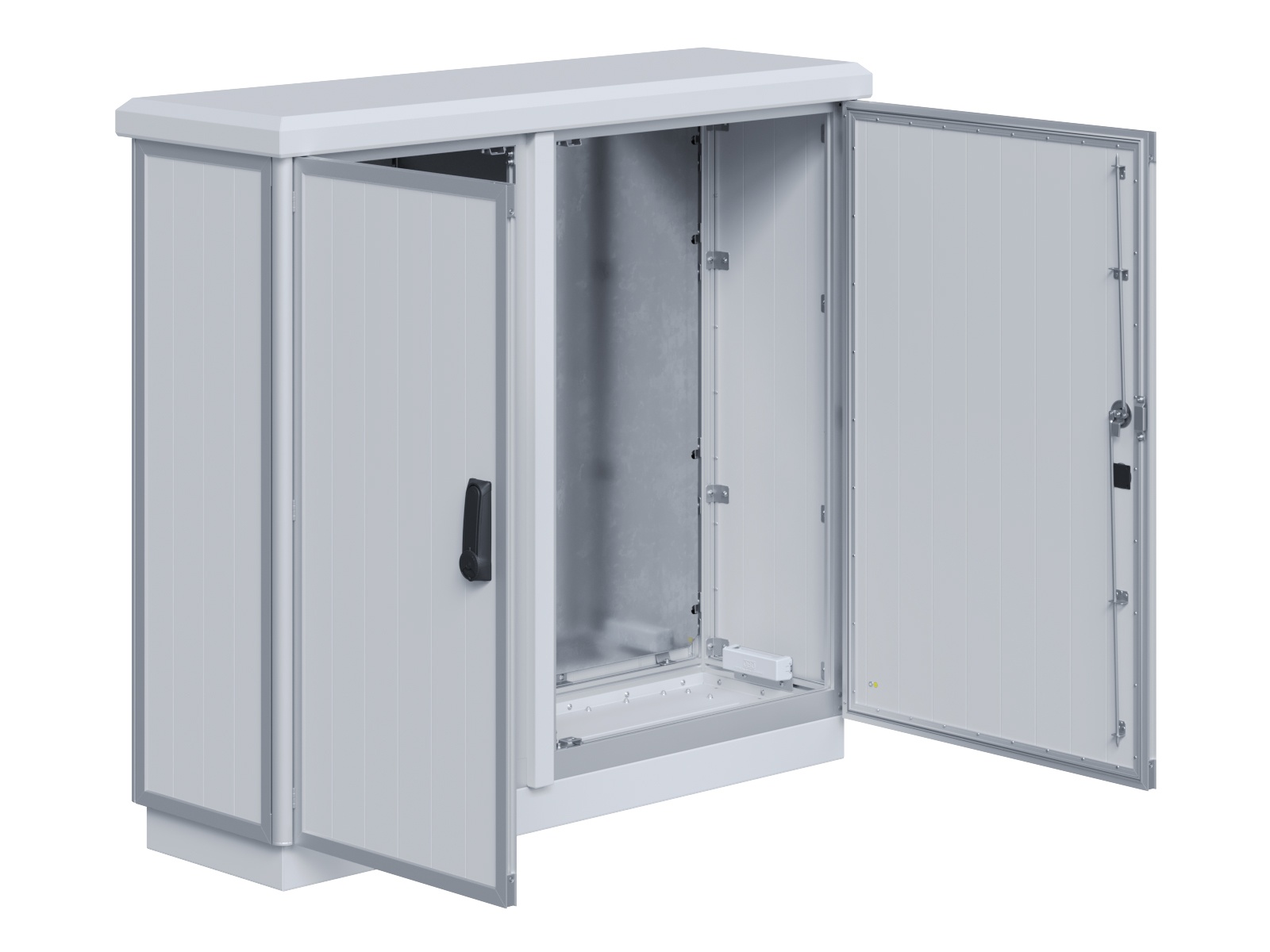 | Outdoor-Schaltschrank aus doppelwandigen Aluminiumprofilen mit EVU-Teil | 11113056 | 2.200 mm | 2.800 mm | 700 mm | Zu den Details |