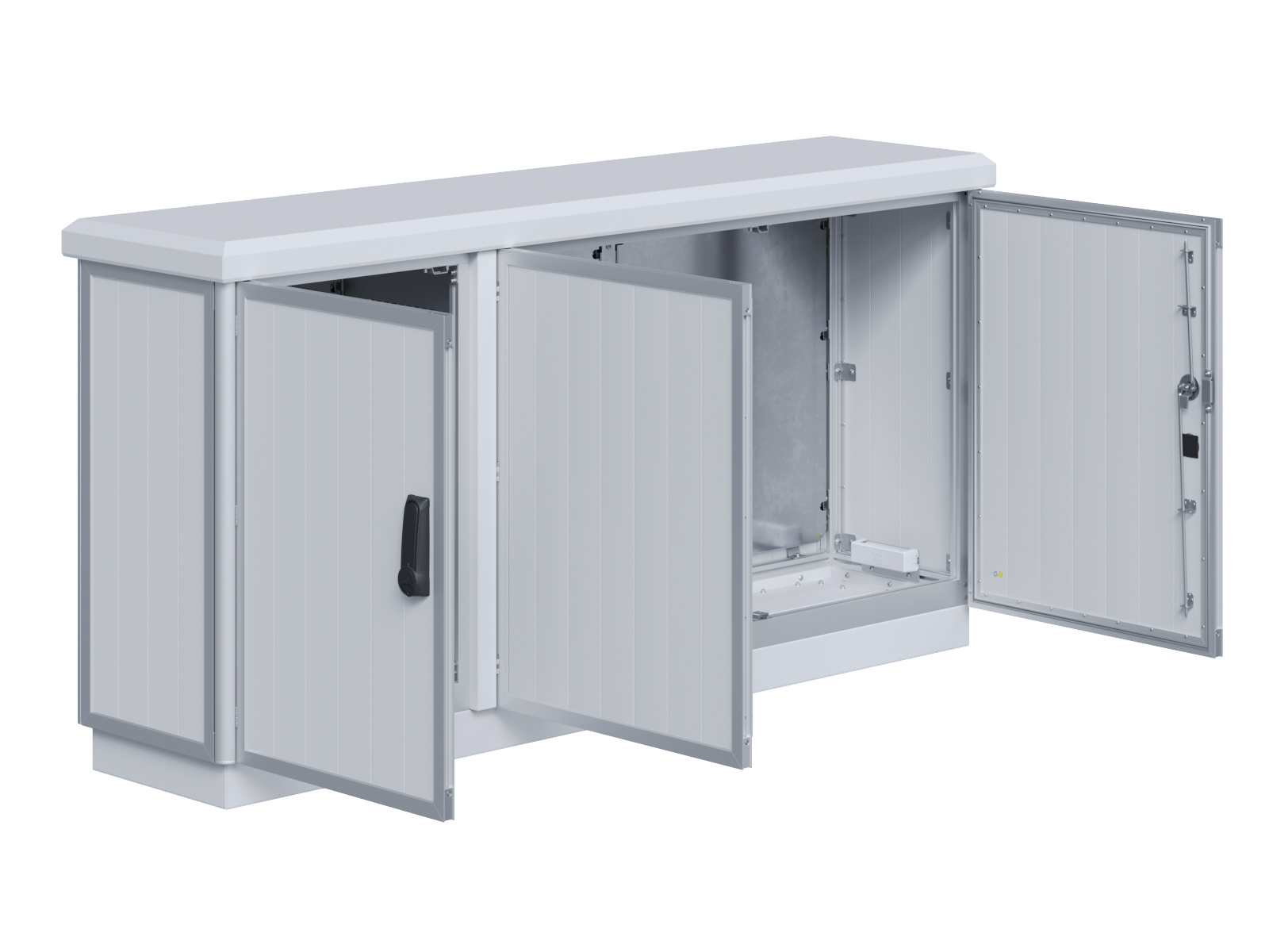 Outdoor-Schaltschrank aus doppelwandigen Aluminiumprofilen mit EVU-Teil