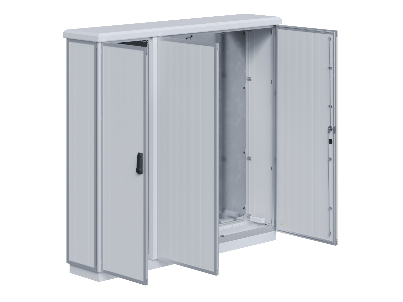 | Outdoor-Schaltschrank aus doppelwandigen Aluminiumprofilen mit EVU-Teil | 11111435 | 1.400 mm | 2.800 mm | 400 mm | Zu den Details |