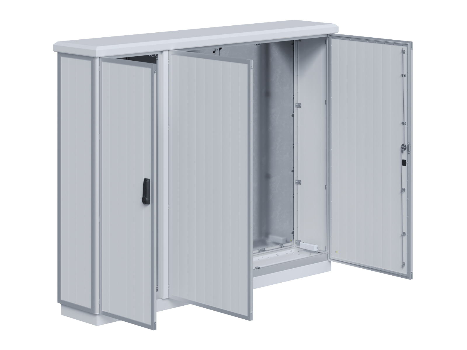 | Outdoor-Schaltschrank aus doppelwandigen Aluminiumprofilen mit EVU-Teil | 11111435 | 1.400 mm | 2.800 mm | 400 mm | Zu den Details |
