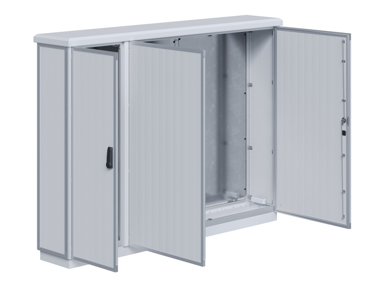 | Outdoor-Schaltschrank aus doppelwandigen Aluminiumprofilen mit EVU-Teil | 11111435 | 1.400 mm | 2.800 mm | 400 mm | Zu den Details |