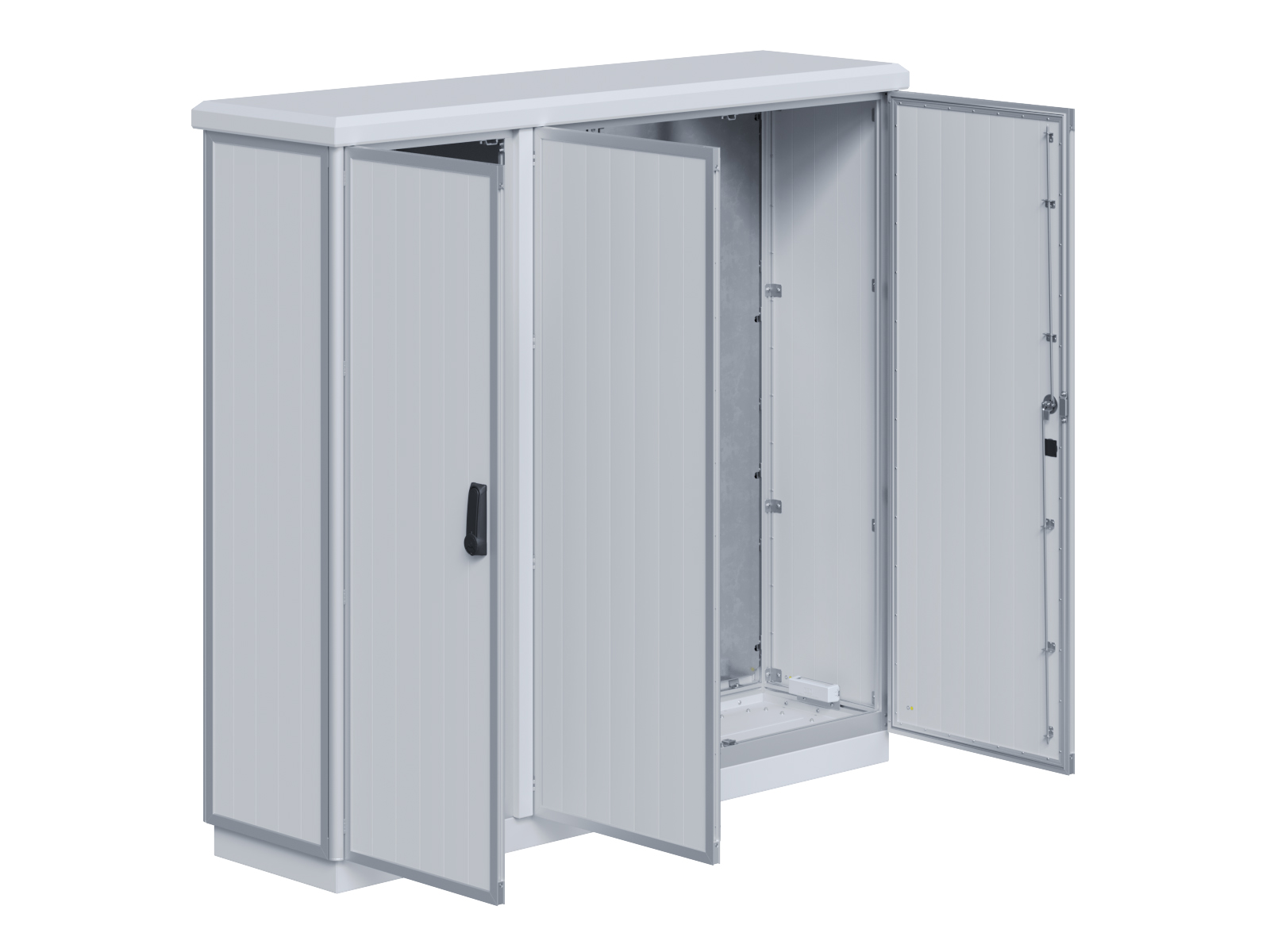 | Outdoor-Schaltschrank aus doppelwandigen Aluminiumprofilen mit EVU-Teil | 11113056 | 2.200 mm | 2.800 mm | 700 mm | Zu den Details |