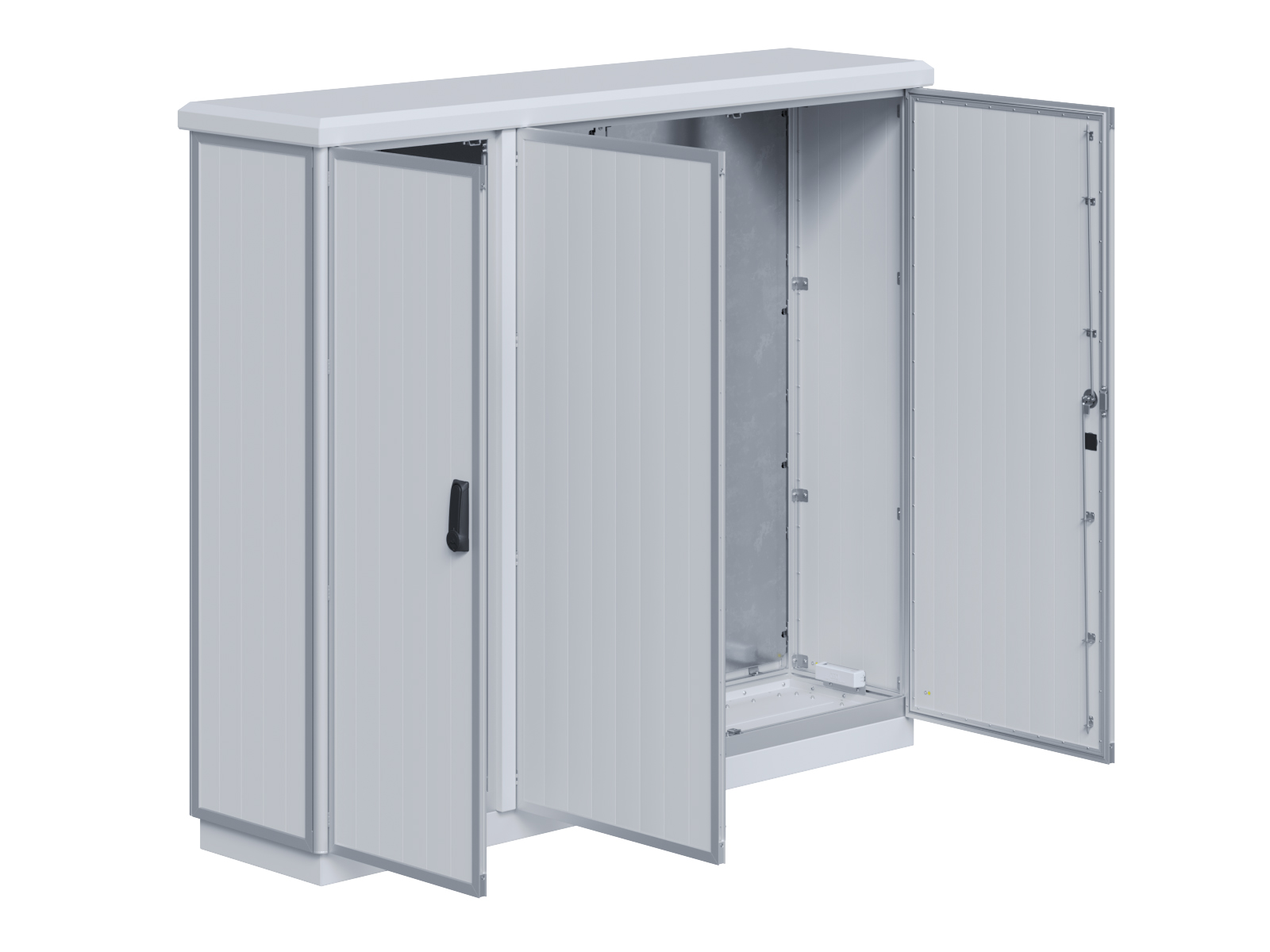 | Outdoor-Schaltschrank aus doppelwandigen Aluminiumprofilen mit EVU-Teil | 11113056 | 2.200 mm | 2.800 mm | 700 mm | Zu den Details |