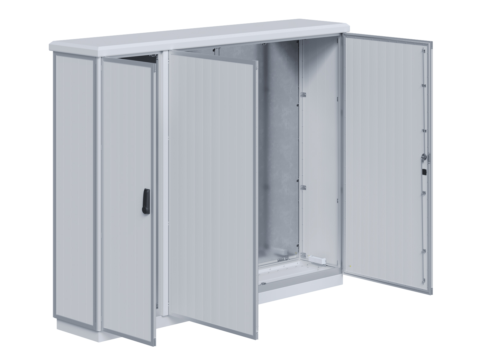 | Outdoor-Schaltschrank aus doppelwandigen Aluminiumprofilen mit EVU-Teil | 11113056 | 2.200 mm | 2.800 mm | 700 mm | Zu den Details |