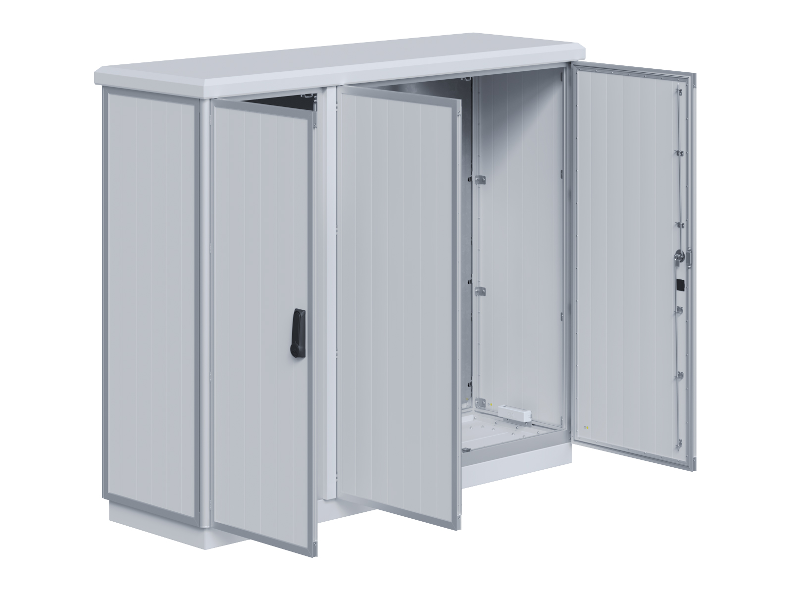 | Outdoor-Schaltschrank aus doppelwandigen Aluminiumprofilen mit EVU-Teil | 11113056 | 2.200 mm | 2.800 mm | 700 mm | Zu den Details |