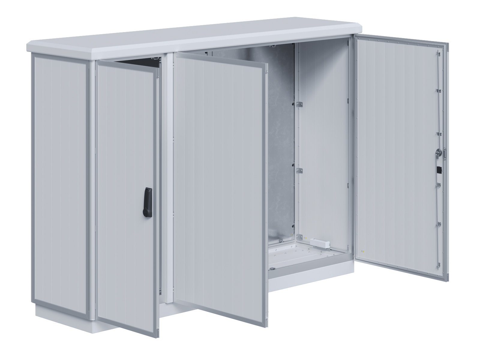 | Outdoor-Schaltschrank aus doppelwandigen Aluminiumprofilen mit EVU-Teil | 11113056 | 2.200 mm | 2.800 mm | 700 mm | Zu den Details |