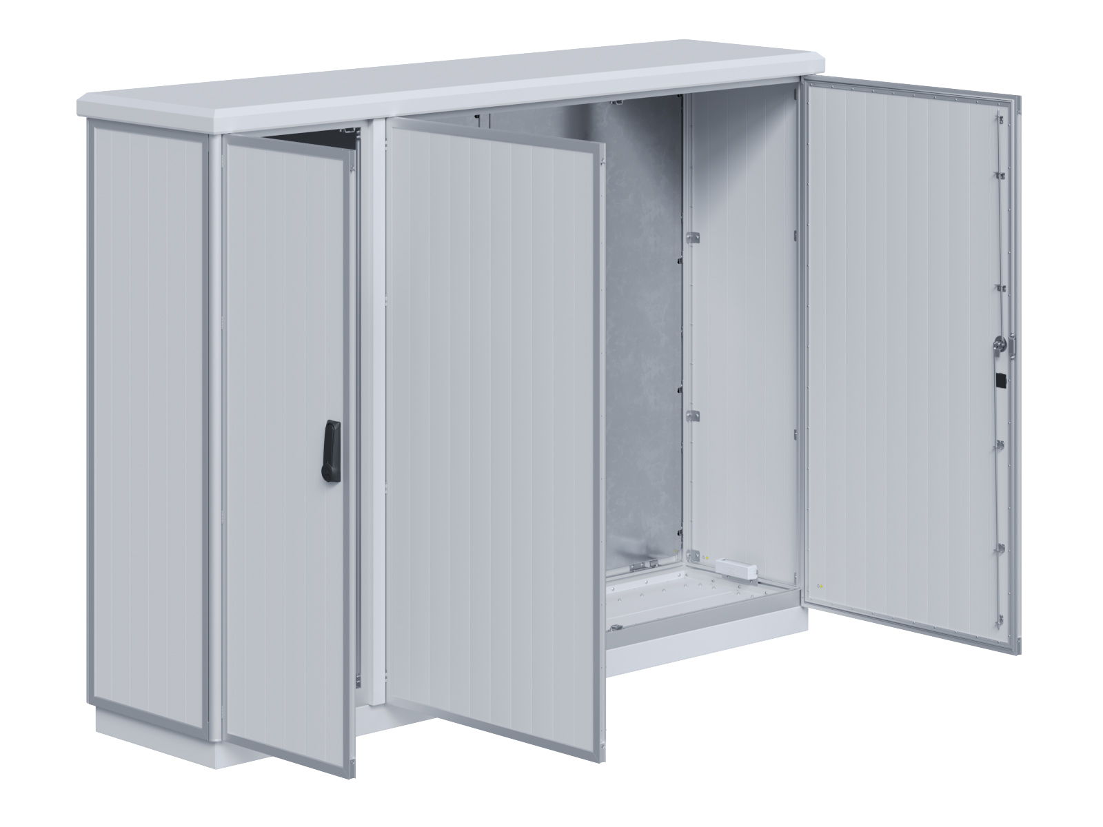 | Outdoor-Schaltschrank aus doppelwandigen Aluminiumprofilen mit EVU-Teil | 11113056 | 2.200 mm | 2.800 mm | 700 mm | Zu den Details |
