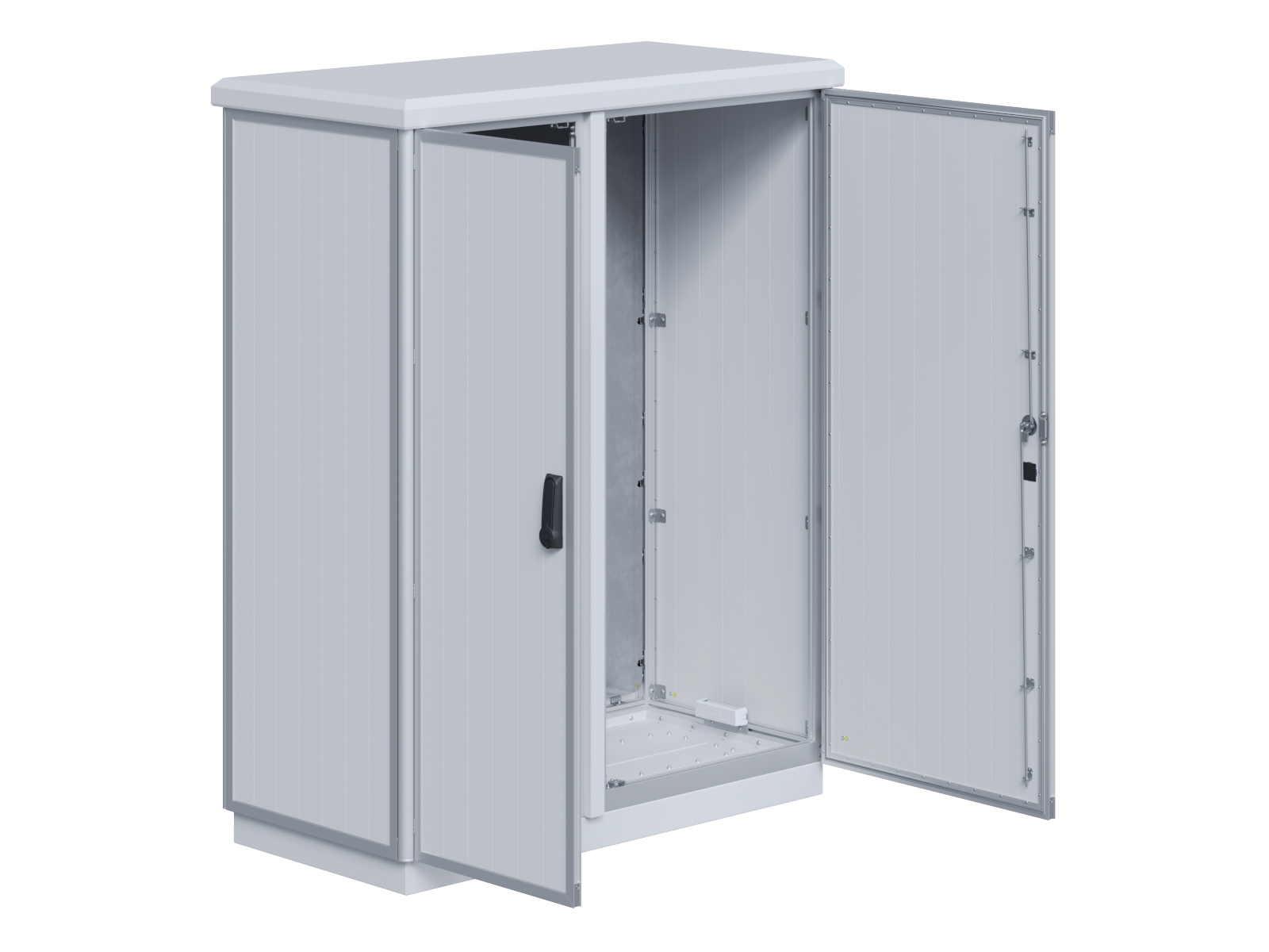 | Outdoor-Schaltschrank aus doppelwandigen Aluminiumprofilen mit EVU-Teil | 11113039 | 1.600 mm | 2.400 mm | 700 mm | Zu den Details |