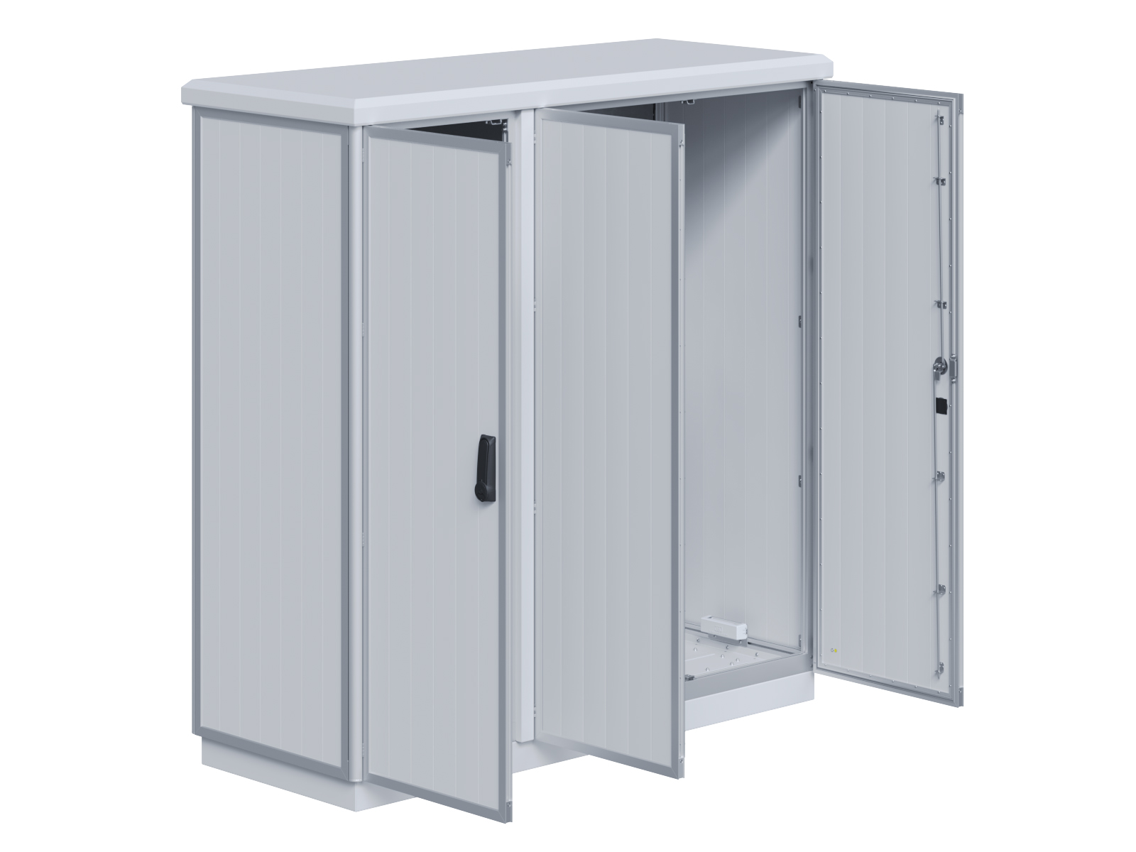 | Outdoor-Schaltschrank aus doppelwandigen Aluminiumprofilen mit EVU-Teil | 11113056 | 2.200 mm | 2.800 mm | 700 mm | Zu den Details |
