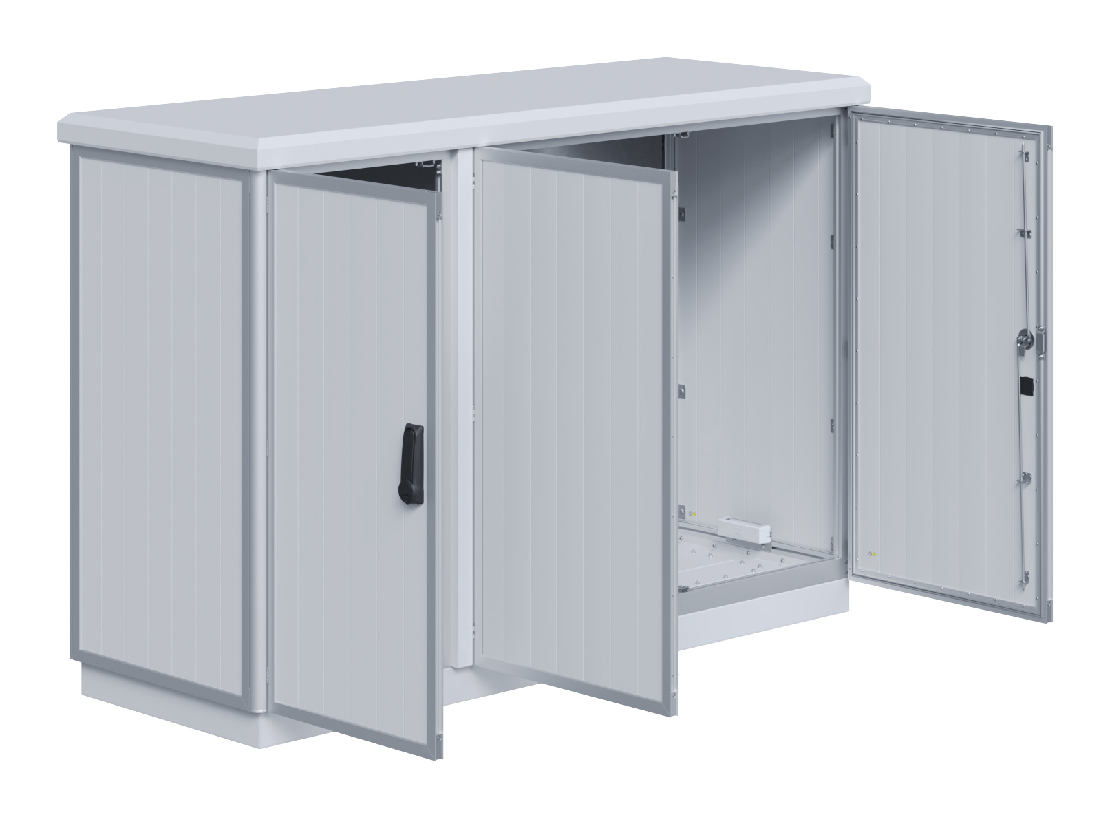 | Outdoor-Schaltschrank aus doppelwandigen Aluminiumprofilen mit EVU-Teil | 11113056 | 2.200 mm | 2.800 mm | 700 mm | Zu den Details |