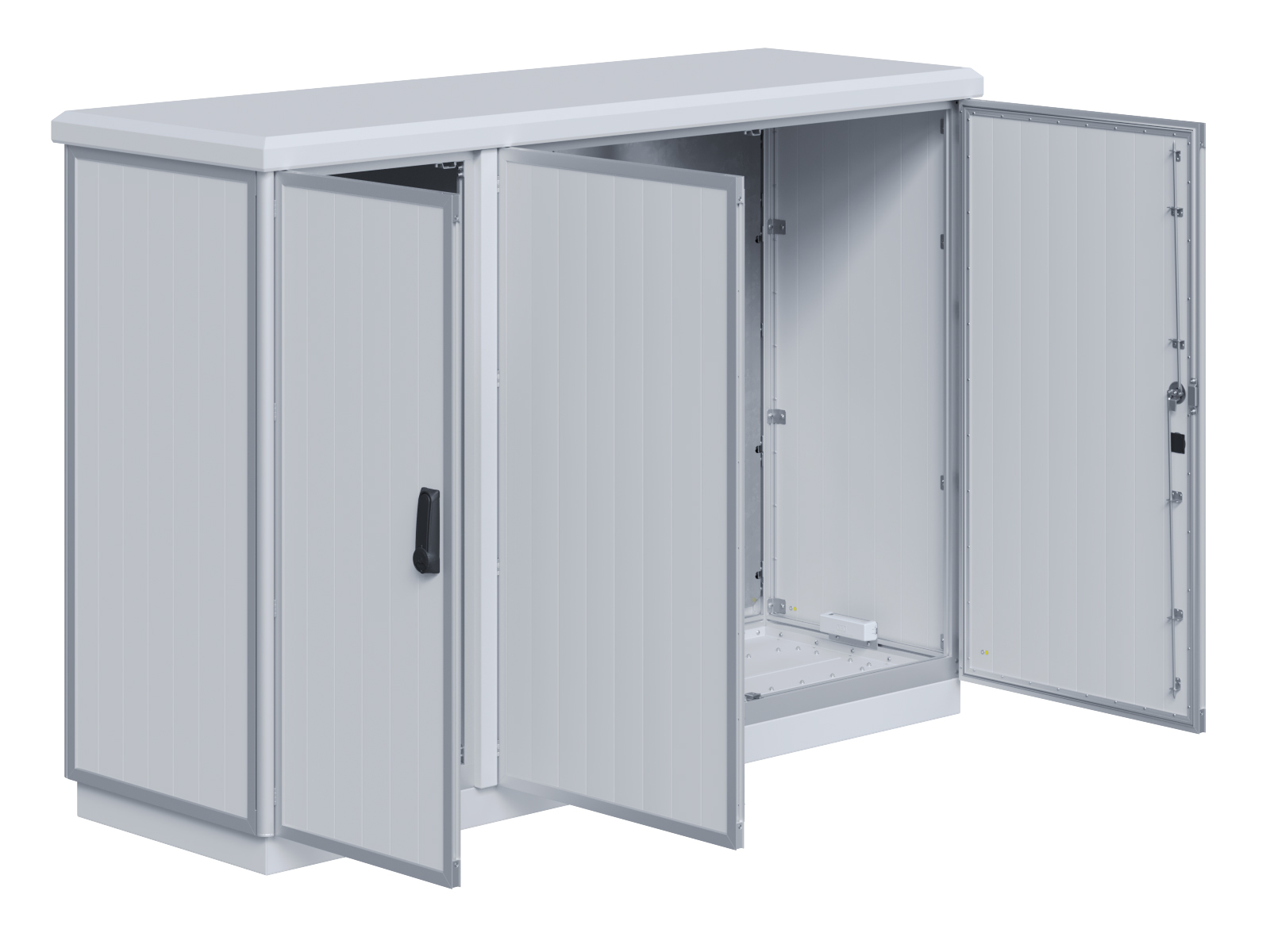 | Outdoor-Schaltschrank aus doppelwandigen Aluminiumprofilen mit EVU-Teil | 11111435 | 1.400 mm | 2.800 mm | 400 mm | Zu den Details |
