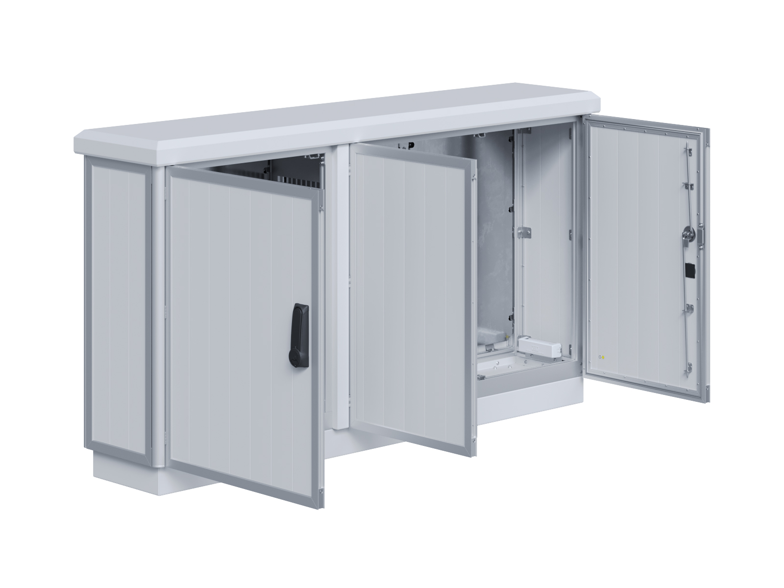 Outdoor-Schaltschrank aus doppelwandigen Aluminiumprofilen mit EVU-Teil