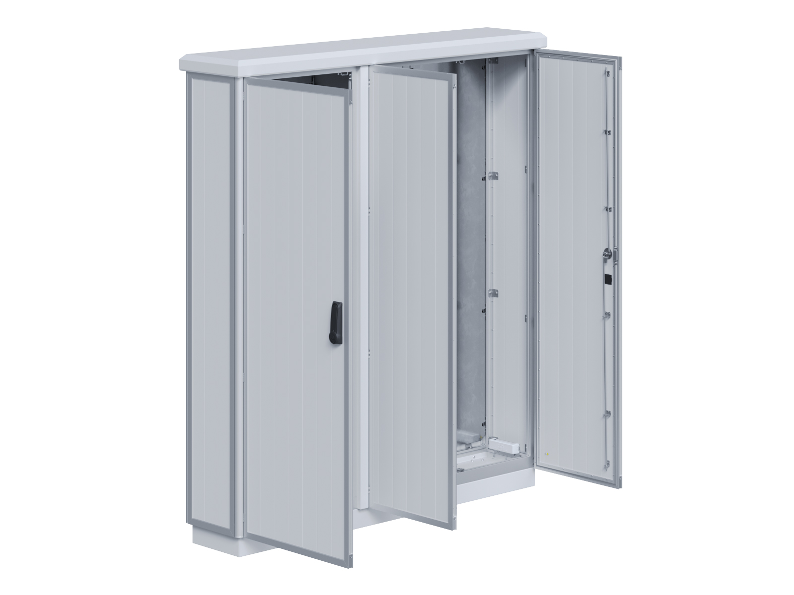 | Outdoor-Schaltschrank aus doppelwandigen Aluminiumprofilen mit EVU-Teil | 11113039 | 1.600 mm | 2.400 mm | 700 mm | Zu den Details |