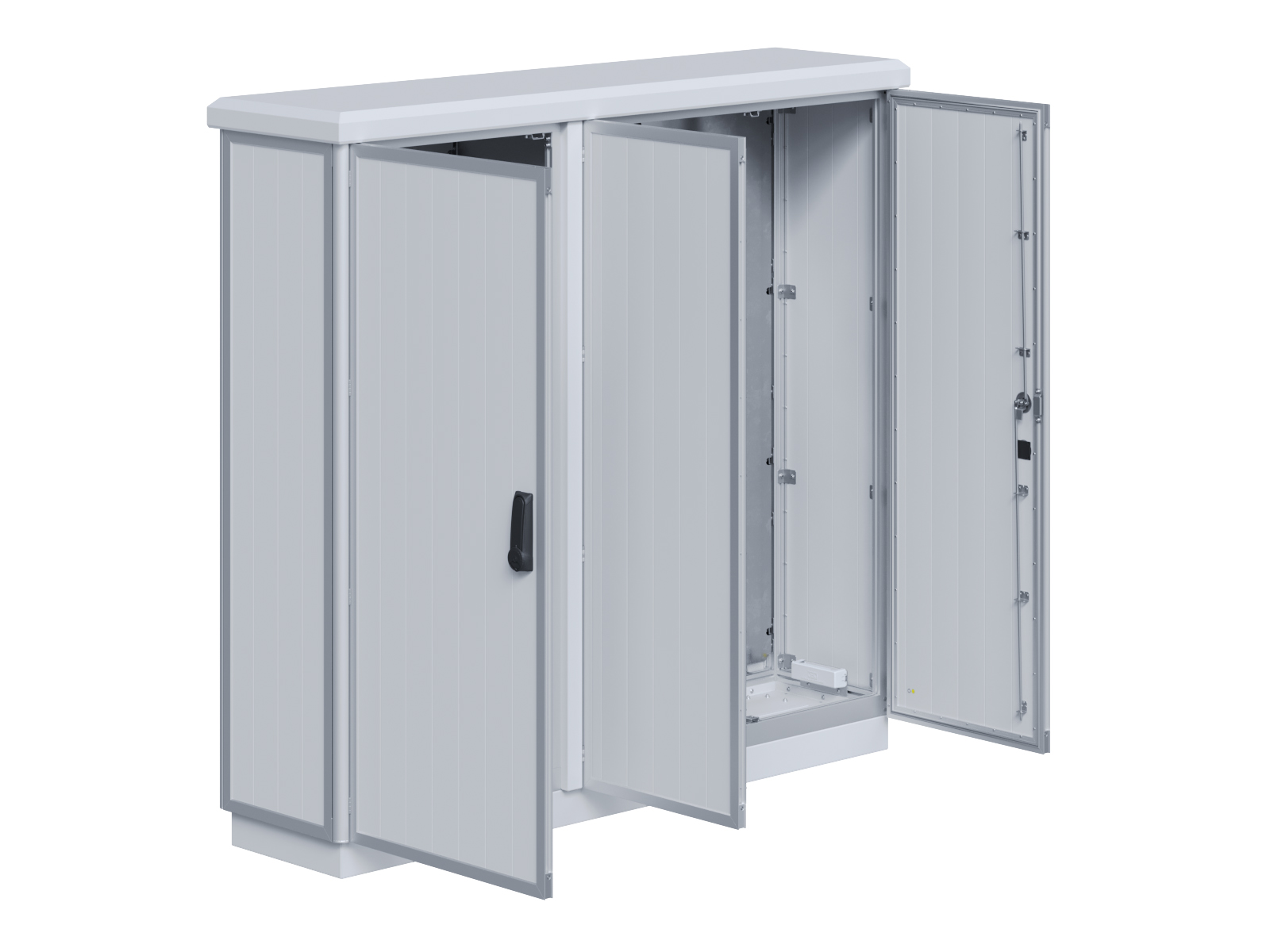 | Outdoor-Schaltschrank aus doppelwandigen Aluminiumprofilen mit EVU-Teil | 11113056 | 2.200 mm | 2.800 mm | 700 mm | Zu den Details |
