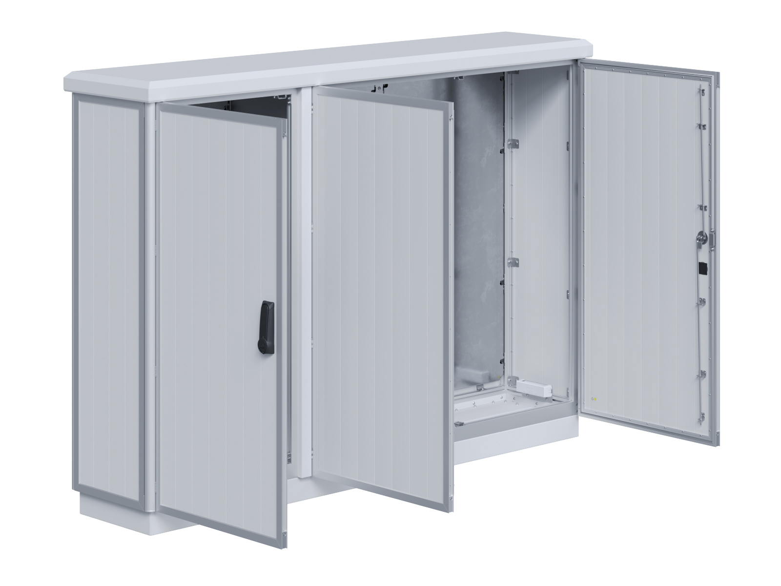 | Outdoor-Schaltschrank aus doppelwandigen Aluminiumprofilen mit EVU-Teil | 11111435 | 1.400 mm | 2.800 mm | 400 mm | Zu den Details |