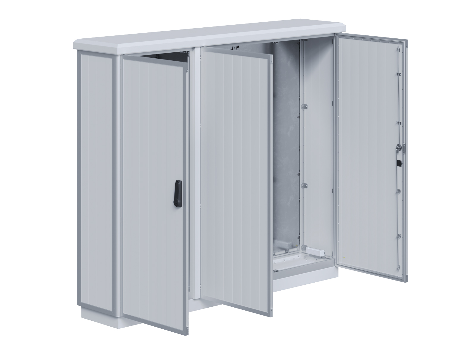| Outdoor-Schaltschrank aus doppelwandigen Aluminiumprofilen mit EVU-Teil | 11113056 | 2.200 mm | 2.800 mm | 700 mm | Zu den Details |