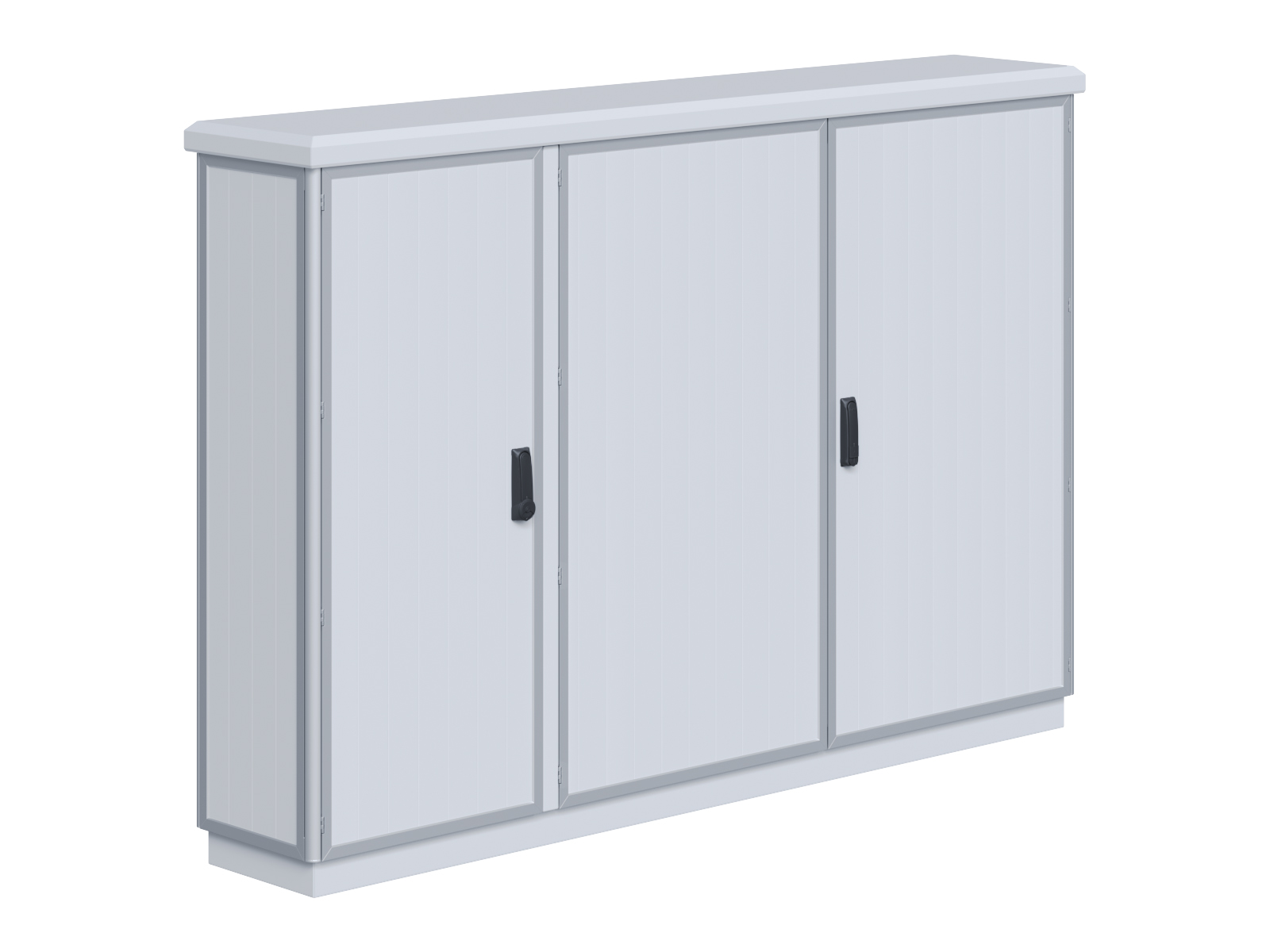 | Outdoor-Schaltschrank aus doppelwandigen Aluminiumprofilen mit EVU-Teil | 11111435 | 1.400 mm | 2.800 mm | 400 mm | Zu den Details |