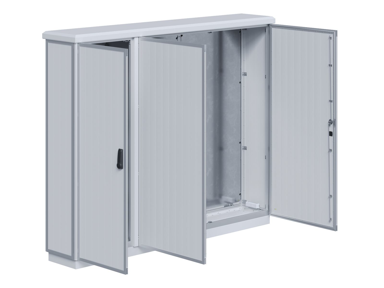 | Outdoor-Schaltschrank aus doppelwandigen Aluminiumprofilen mit EVU-Teil | 11113039 | 1.600 mm | 2.400 mm | 700 mm | Zu den Details |