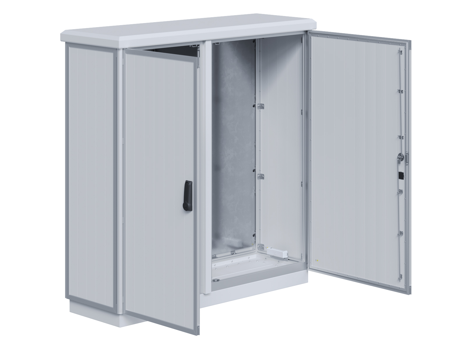 | Outdoor-Schaltschrank aus doppelwandigen Aluminiumprofilen mit EVU-Teil | 11113056 | 2.200 mm | 2.800 mm | 700 mm | Zu den Details |