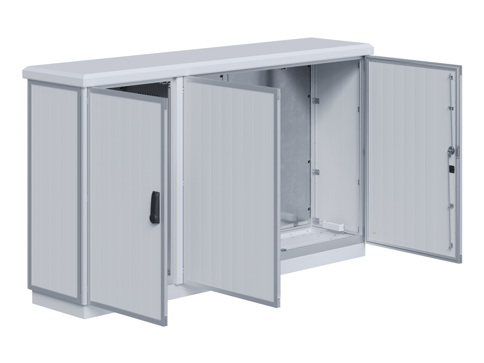 | Outdoor-Schaltschrank aus doppelwandigen Aluminiumprofilen mit EVU-Teil | 11113056 | 2.200 mm | 2.800 mm | 700 mm | Zu den Details |