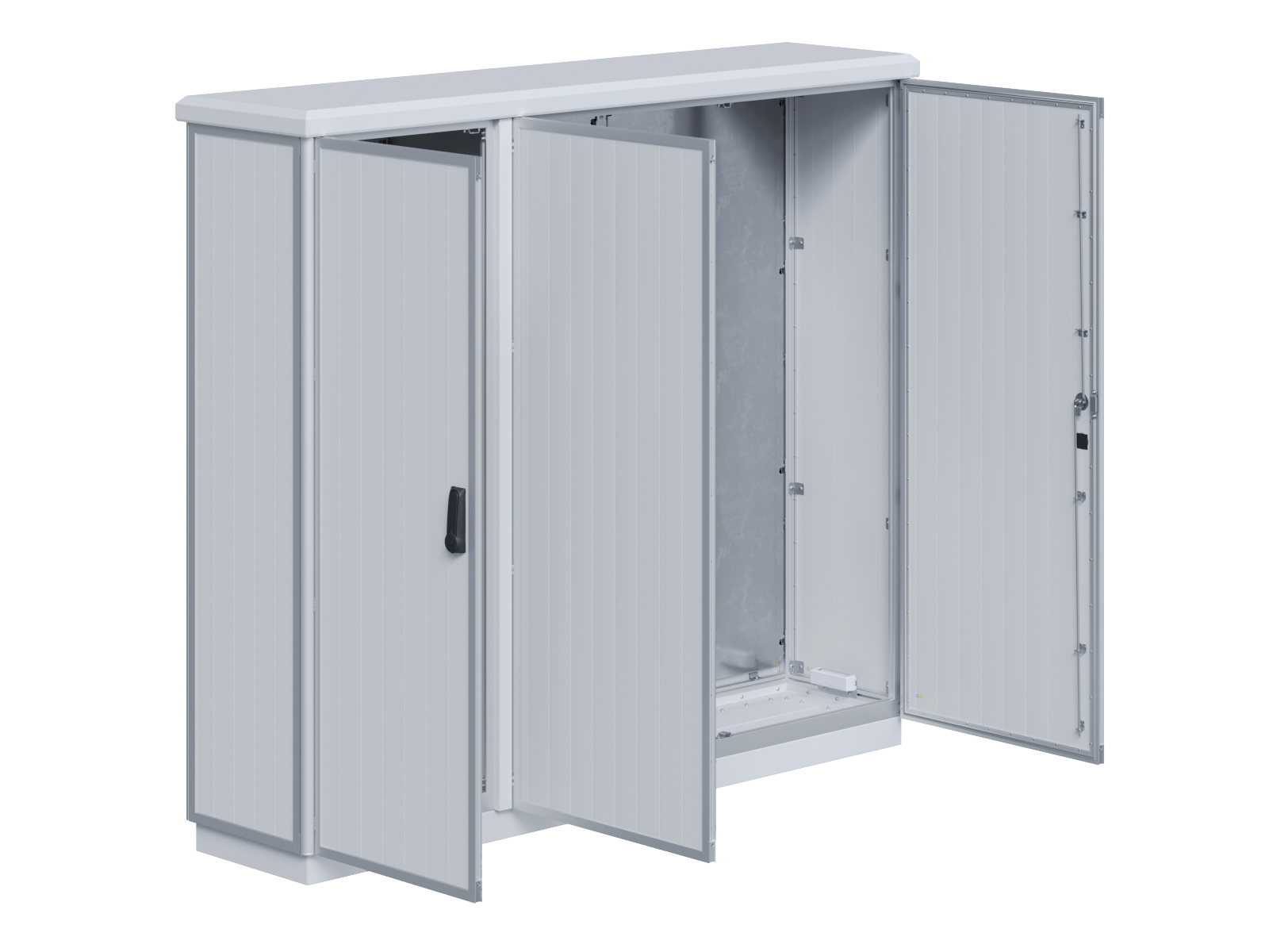 | Outdoor-Schaltschrank aus doppelwandigen Aluminiumprofilen mit EVU-Teil | 11113056 | 2.200 mm | 2.800 mm | 700 mm | Zu den Details |