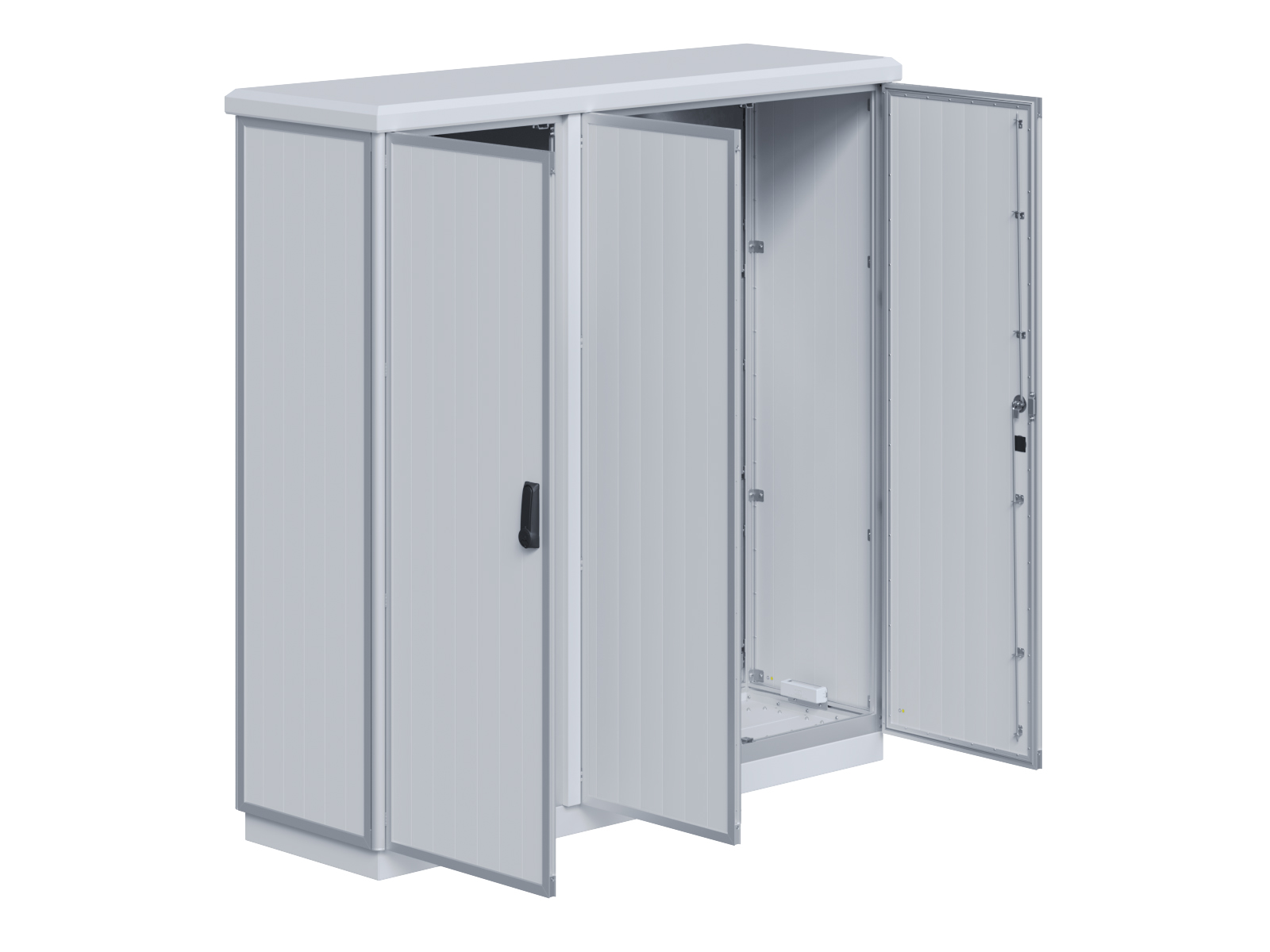 | Outdoor-Schaltschrank aus doppelwandigen Aluminiumprofilen mit EVU-Teil | 11111435 | 1.400 mm | 2.800 mm | 400 mm | Zu den Details |