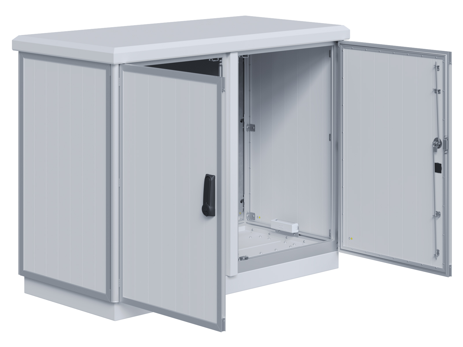 | Outdoor-Schaltschrank aus doppelwandigen Aluminiumprofilen mit EVU-Teil | 11113056 | 2.200 mm | 2.800 mm | 700 mm | Zu den Details |