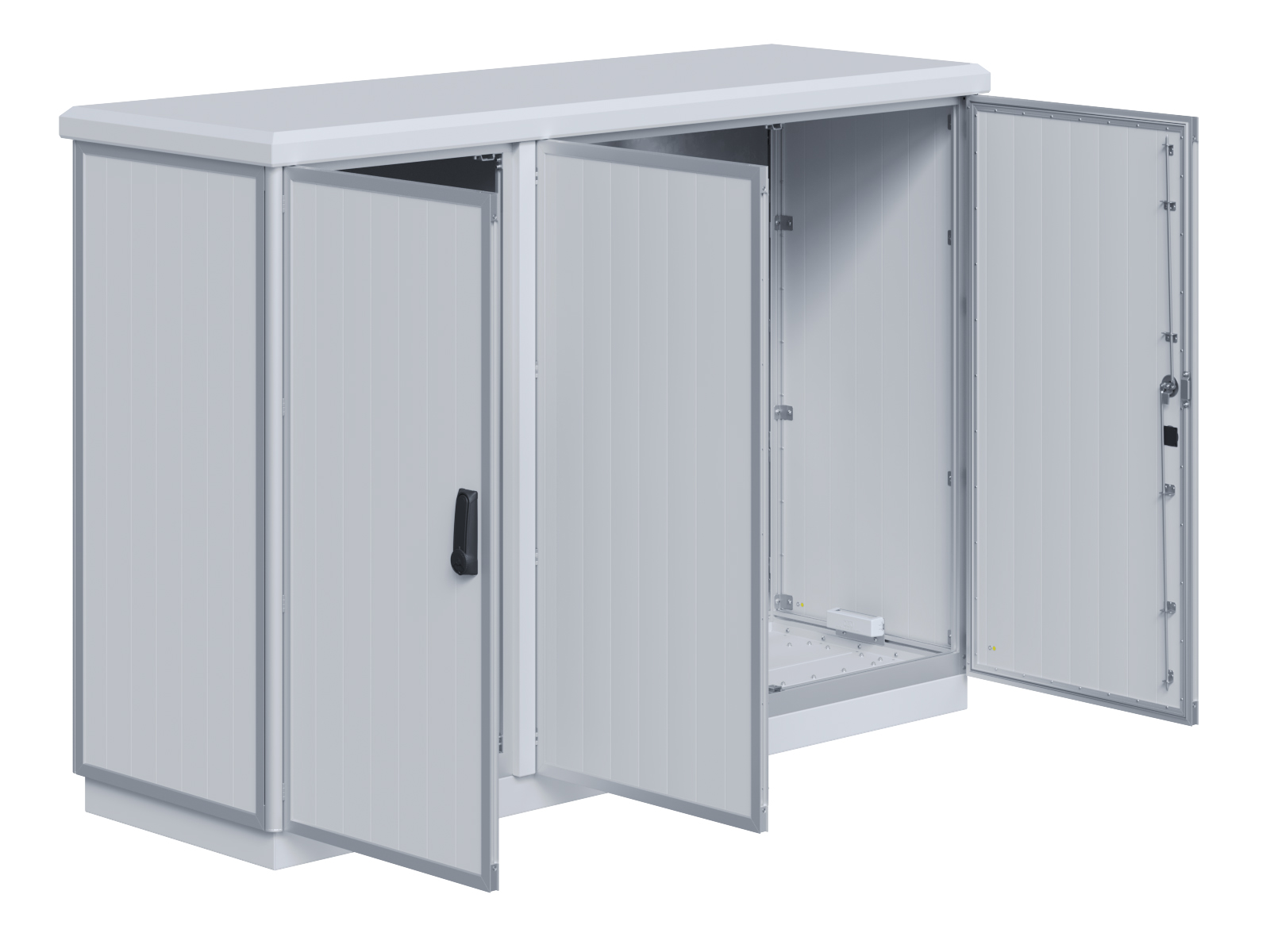 | Outdoor-Schaltschrank aus doppelwandigen Aluminiumprofilen mit EVU-Teil | 11111438 | 2.000 mm | 2.800 mm | 400 mm | Zu den Details |