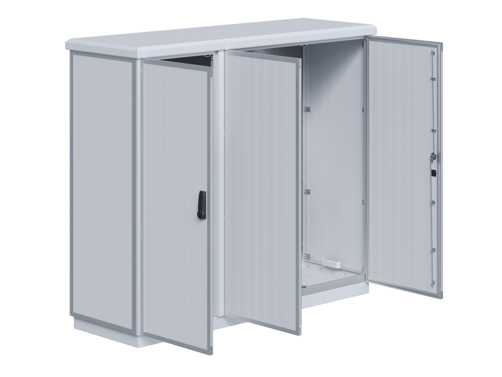 | Outdoor-Schaltschrank aus doppelwandigen Aluminiumprofilen mit EVU-Teil | 11113056 | 2.200 mm | 2.800 mm | 700 mm | Zu den Details |